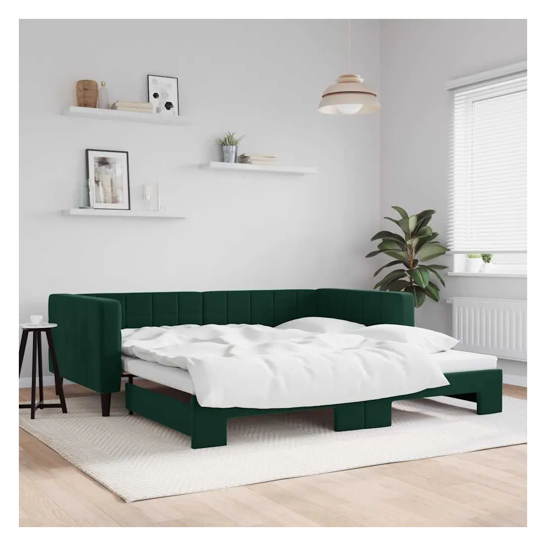 Ce lit de repos 2 en 1 avec lit gigogne, servant à la fois de canapé et de lit, constitue un supplément pratique et accrocheur à votre salon ou chambre à coucher. Lit de repos polyvalent : le canapé-lit fonctionne comme un canapé pendant la journée et se transforme facilement en lit double la nuit en retirant le lit gigogne, offrant une solution pratique pour accueillir des invités et maximiser l'espace.Velours doux et construction solide : ce canapé-lit a un cadre robuste en bois et en métal et est recouvert de velours doux et confortable.Design moderne : le canapé-lit a un design moderne qui présente des lignes épurées, un aspect minimaliste, ainsi que de la lumière naturelle, et ajoutera un style moderne à votre intérieur ! Bon à savoir :Les matelas ne sont pas inclus avec ce lit. Nous proposons une sélection variée de matelas. Vous pouvez consulter notre boutique pour trouver les matelas assortis.