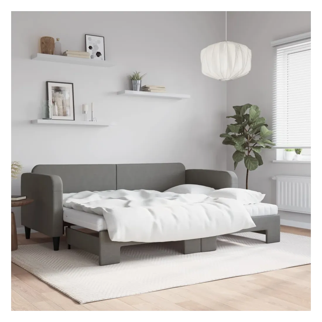 Ce lit de repos 2 en 1 avec lit gigogne, servant à la fois de canapé et de lit, constitue un supplément pratique et accrocheur à votre salon ou chambre à coucher. Lit de repos polyvalent : le canapé-lit fonctionne comme un canapé pendant la journée et se transforme facilement en lit double la nuit en retirant le lit gigogne, offrant une solution pratique pour accueillir des invités et maximiser l'espace.Matelas en mousse confortable : ce lit est fourni avec deux matelas en mousse pour un soutien maximal et un confort optimal.Tissu durable et construction solide : ce canapé-lit a une structure robuste en bois et en métal et est recouvert d'un tissu durable et confortable.
