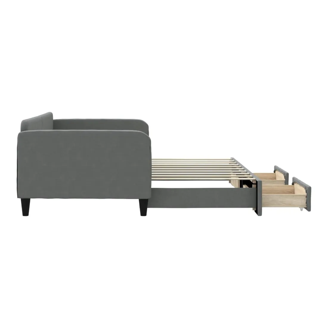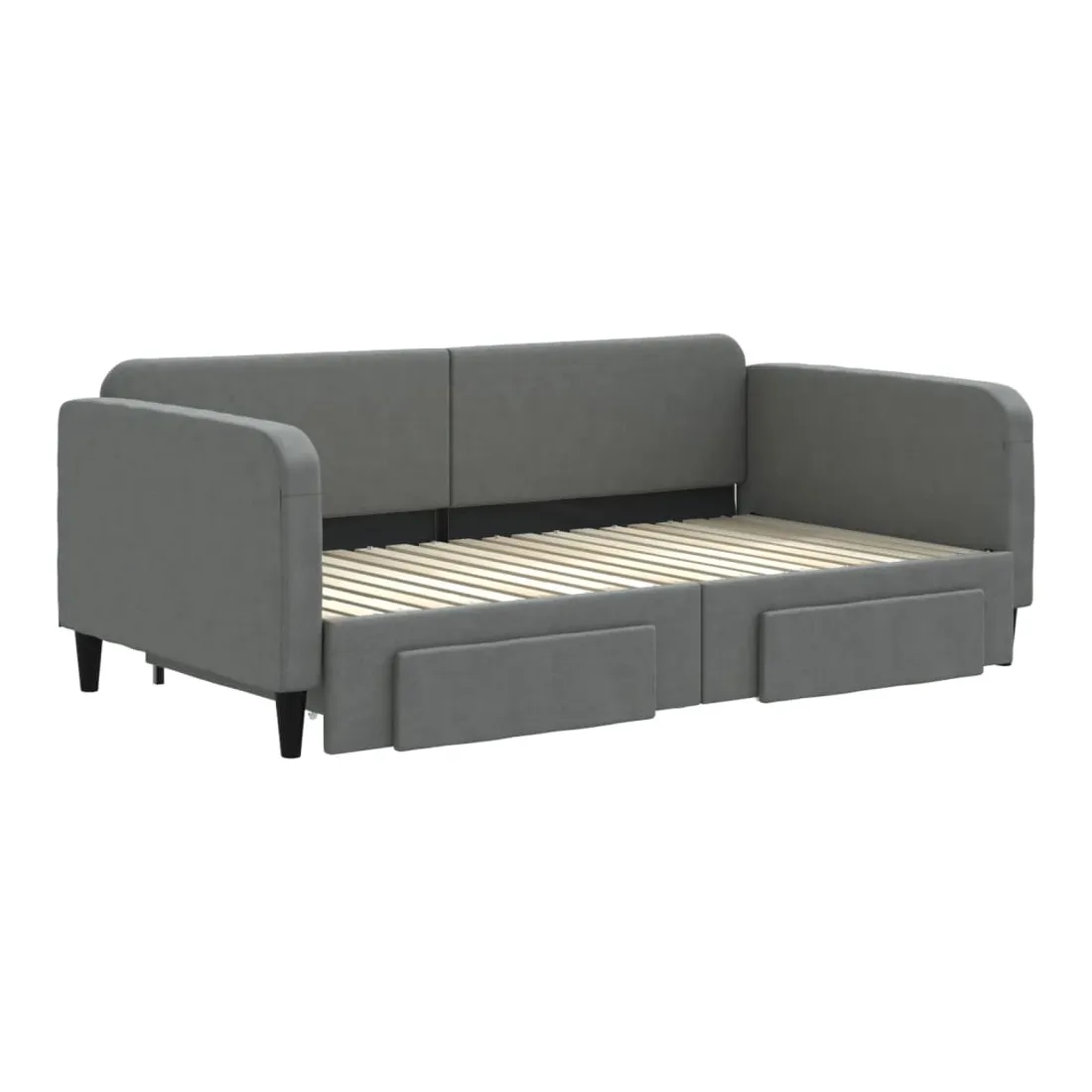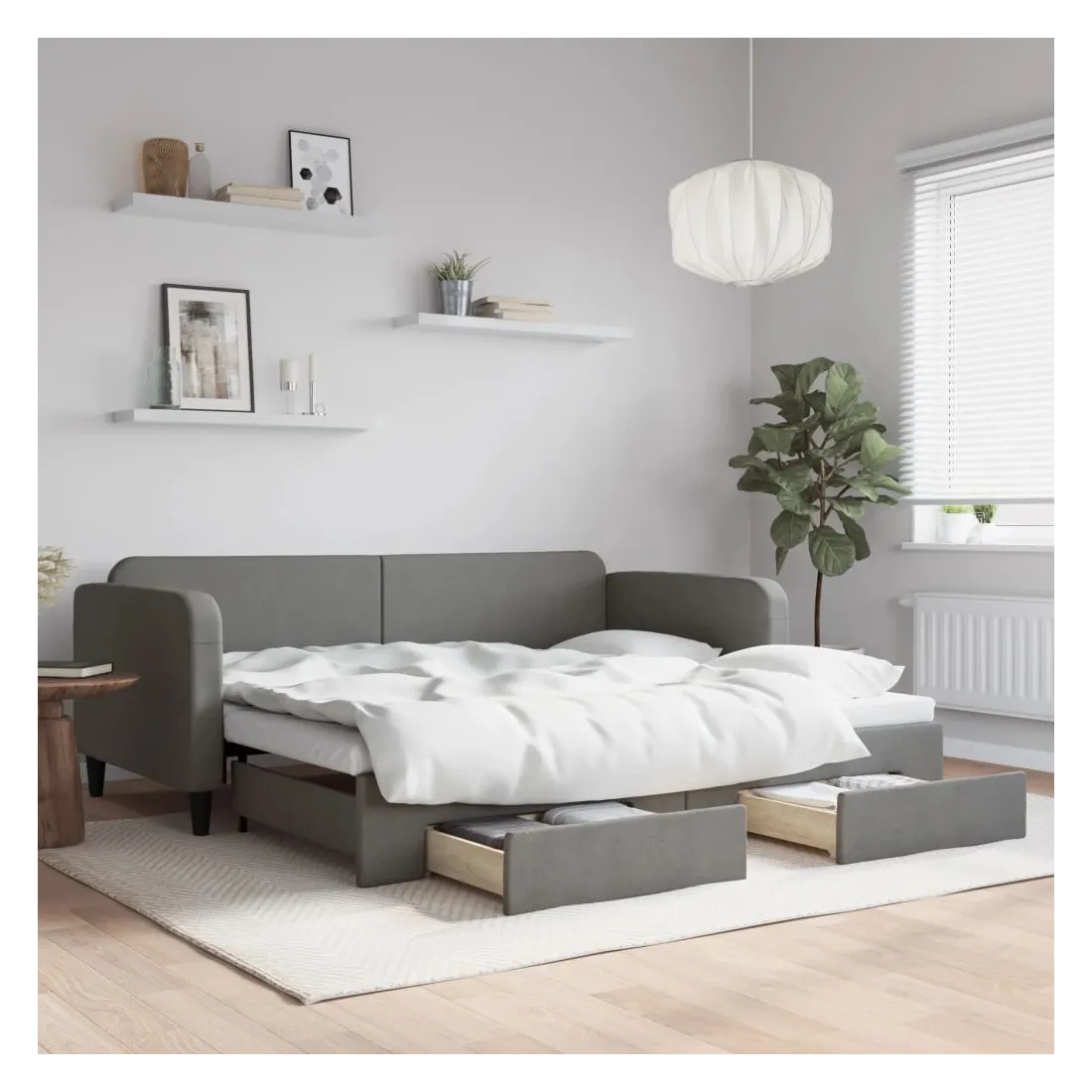 Ce lit de repos 2 en 1 avec lit gigogne, servant à la fois de canapé et de lit, constitue un supplément pratique et accrocheur à votre salon ou chambre à coucher. Lit de repos polyvalent : le canapé-lit fonctionne comme un canapé pendant la journée et se transforme facilement en lit double la nuit en retirant le lit gigogne, offrant une solution pratique pour accueillir des invités et maximiser l'espace.Grand espace de rangement : ce lit d'appoint dispose de deux tiroirs à roulettes qui offrent suffisamment d'espace pour ranger vos vêtements, chaussettes, jouets, coussins, etc.Tissu durable et construction solide : ce canapé-lit a une structure robuste en bois et en métal et est recouvert d'un tissu durable et confortable. Bon à savoir :Les matelas ne sont pas inclus avec ce lit de repos. Nous proposons une sélection variée de matelas. Vous pouvez consulter notre boutique pour les matelas assortis.