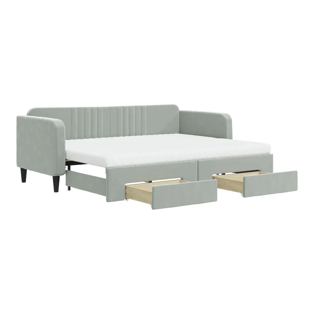 Ce lit de repos 2 en 1 avec lit gigogne, servant à la fois de canapé et de lit, constitue un supplément pratique et accrocheur à votre salon ou chambre à coucher. Lit de repos polyvalent : le canapé-lit fonctionne comme un canapé pendant la journée et se transforme facilement en lit double la nuit en retirant le lit gigogne, offrant une solution pratique pour accueillir des invités et maximiser l'espace.Grand espace de rangement : ce lit d'appoint dispose de deux tiroirs à roulettes qui offrent suffisamment d'espace pour ranger vos vêtements, chaussettes, jouets, coussins, etc.Matelas en mousse confortable : ce lit est fourni avec deux matelas en mousse pour un soutien maximal et un confort optimal.Velours doux et construction solide : ce canapé-lit a un cadre robuste en bois et en métal et est recouvert de velours doux et confortable.