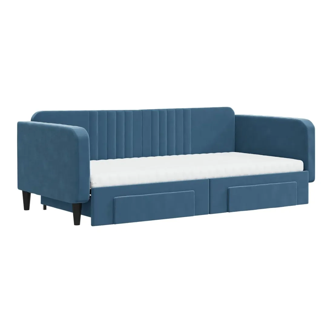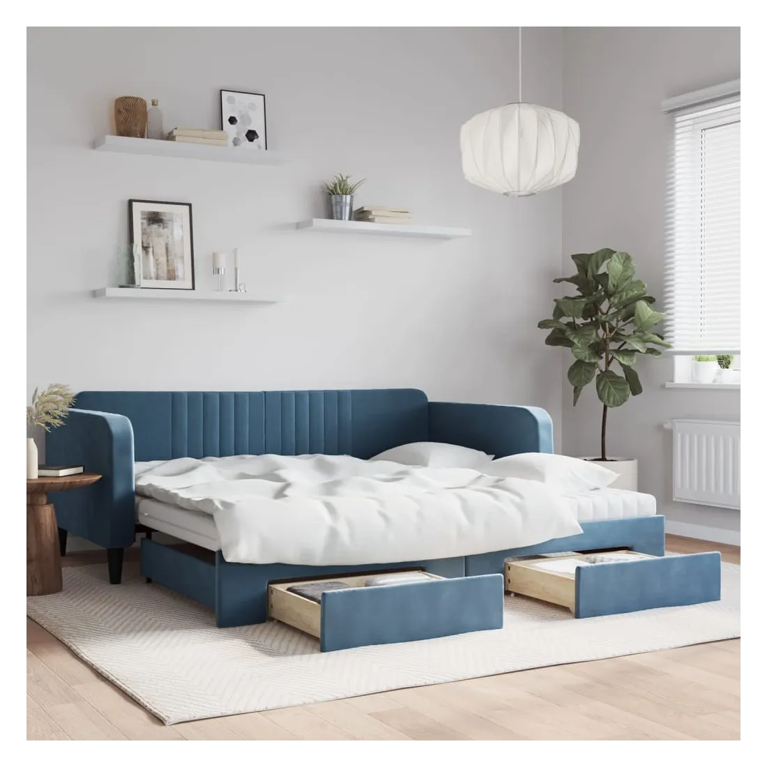 Ce lit de repos 2 en 1 avec lit gigogne, servant à la fois de canapé et de lit, constitue un supplément pratique et accrocheur à votre salon ou chambre à coucher. Lit de repos polyvalent : le canapé-lit fonctionne comme un canapé pendant la journée et se transforme facilement en lit double la nuit en retirant le lit gigogne, offrant une solution pratique pour accueillir des invités et maximiser l'espace.Grand espace de rangement : ce lit d'appoint dispose de deux tiroirs à roulettes qui offrent suffisamment d'espace pour ranger vos vêtements, chaussettes, jouets, coussins, etc.Matelas en mousse confortable : ce lit est fourni avec deux matelas en mousse pour un soutien maximal et un confort optimal.Velours doux et construction solide : ce canapé-lit a un cadre robuste en bois et en métal et est recouvert de velours doux et confortable.