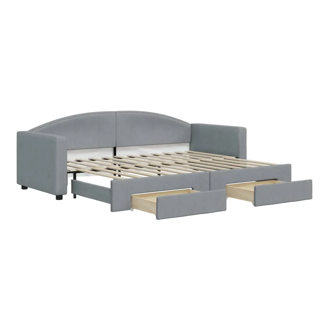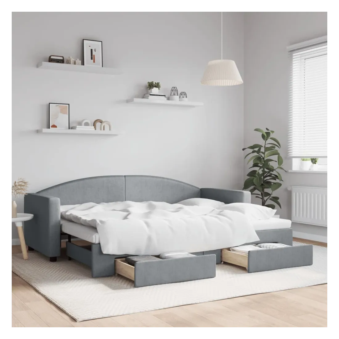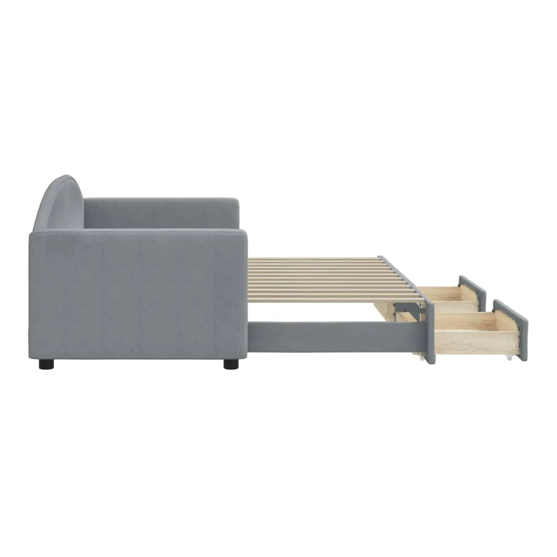 Ce lit de repos 2 en 1 avec lit gigogne, servant à la fois de canapé et de lit, constitue un supplément pratique et accrocheur à votre salon ou chambre à coucher. Lit de repos polyvalent : le canapé-lit fonctionne comme un canapé pendant la journée et se transforme facilement en lit double la nuit en retirant le lit gigogne, offrant une solution pratique pour accueillir des invités et maximiser l'espace.Grand espace de rangement : ce lit d'appoint dispose de deux tiroirs à roulettes qui offrent suffisamment d'espace pour ranger vos vêtements, chaussettes, jouets, coussins, etc.Tissu durable et construction solide : ce canapé-lit a une structure robuste en bois et en métal et est recouvert d'un tissu durable et confortable. Bon à savoir :Les matelas ne sont pas inclus avec ce lit. Nous proposons une sélection variée de matelas. Vous pouvez consulter notre boutique pour trouver les matelas assortis.