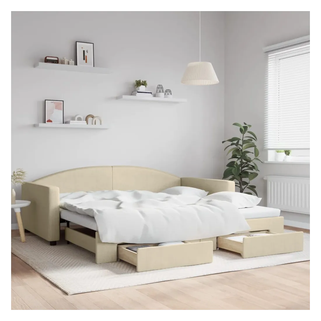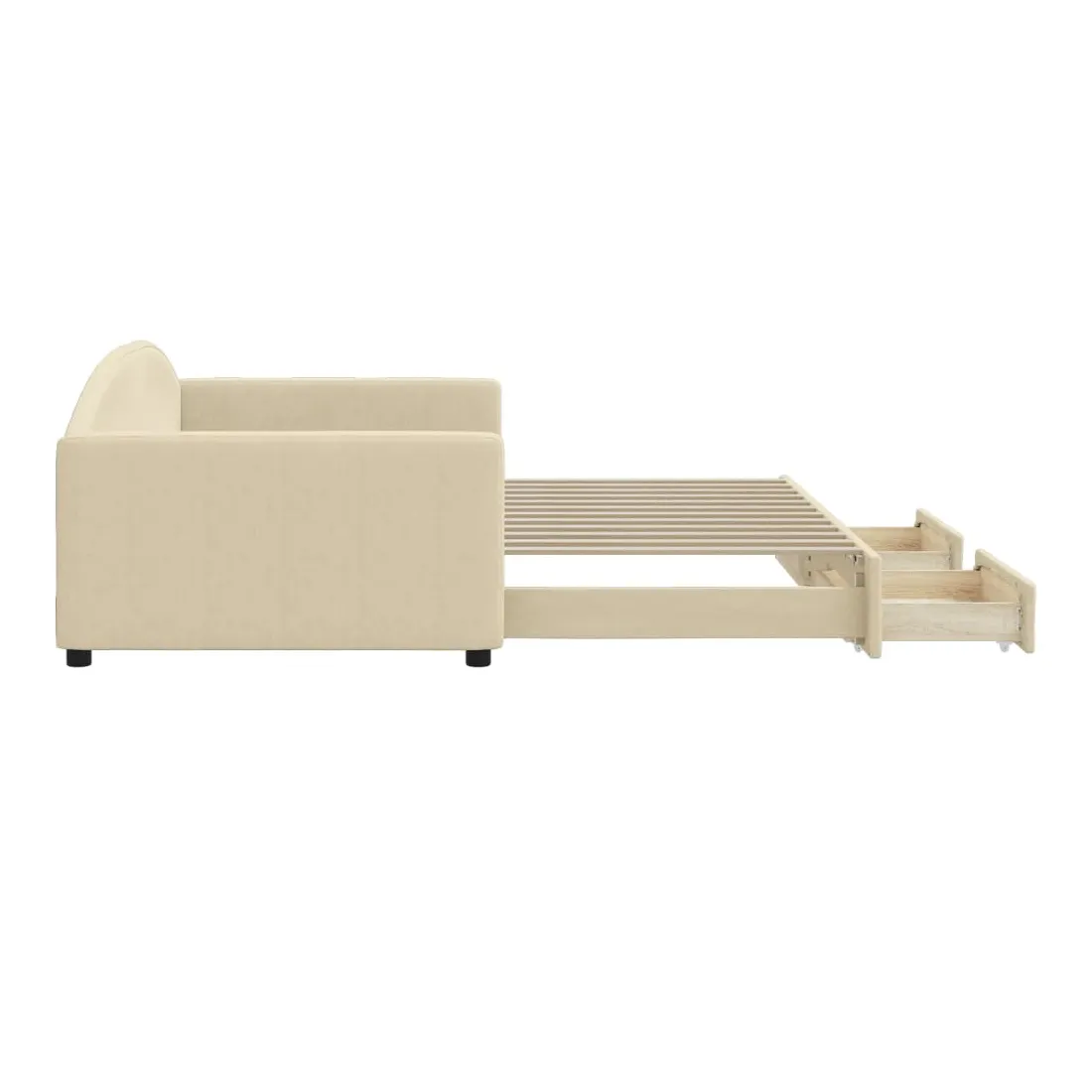 Ce lit de repos 2 en 1 avec lit gigogne, servant à la fois de canapé et de lit, constitue un supplément pratique et accrocheur à votre salon ou chambre à coucher. Lit de repos polyvalent : le canapé-lit fonctionne comme un canapé pendant la journée et se transforme facilement en lit double la nuit en retirant le lit gigogne, offrant une solution pratique pour accueillir des invités et maximiser l'espace.Grand espace de rangement : ce lit d'appoint dispose de deux tiroirs à roulettes qui offrent suffisamment d'espace pour ranger vos vêtements, chaussettes, jouets, coussins, etc.Tissu durable et construction solide : ce canapé-lit a une structure robuste en bois et en métal et est recouvert d'un tissu durable et confortable. Bon à savoir :Les matelas ne sont pas inclus avec ce lit. Nous proposons une sélection variée de matelas. Vous pouvez consulter notre boutique pour trouver les matelas assortis.