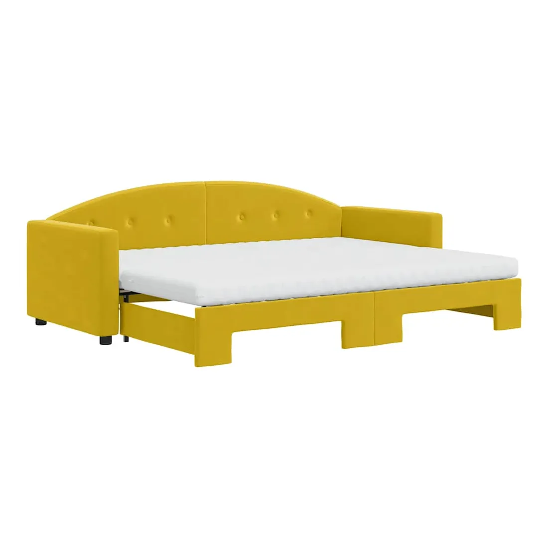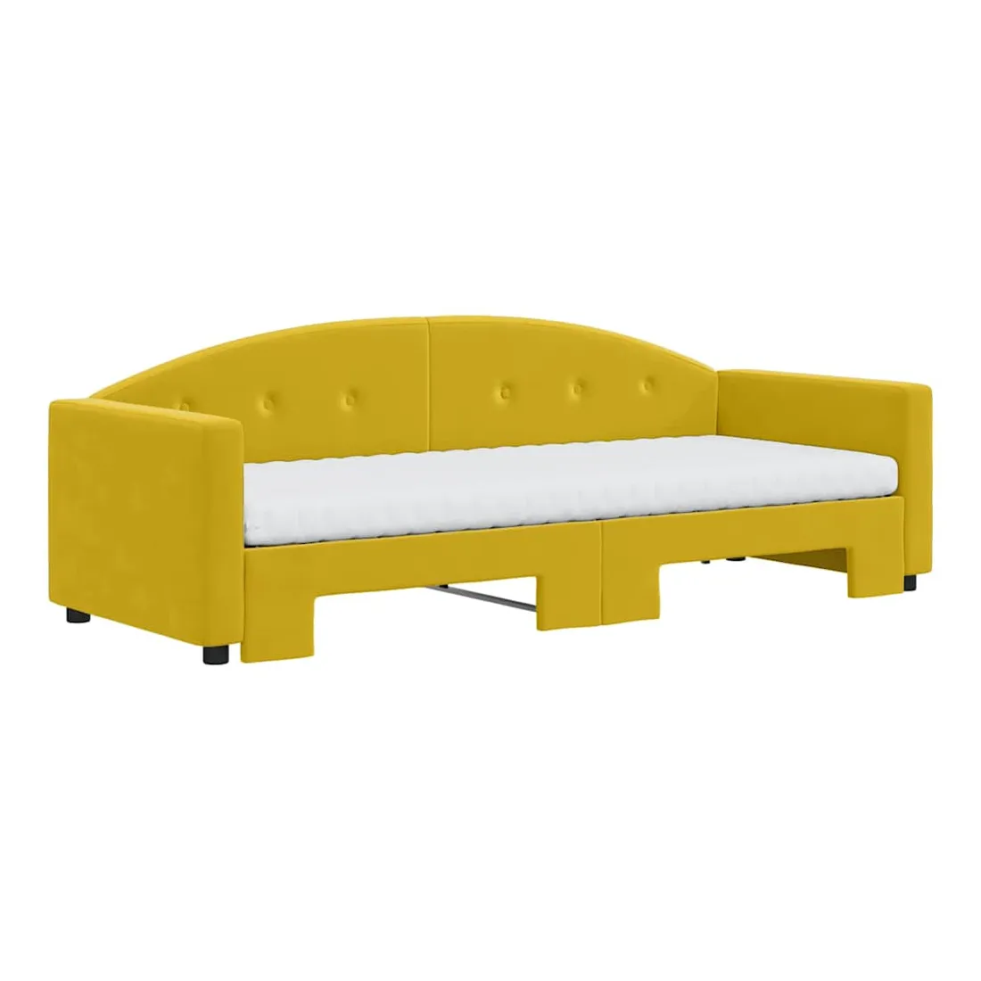 Lit de jour avec lit gigogne et matelas jaune 80x200 cm velours