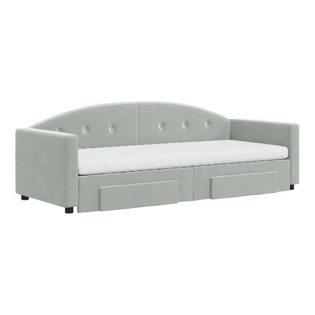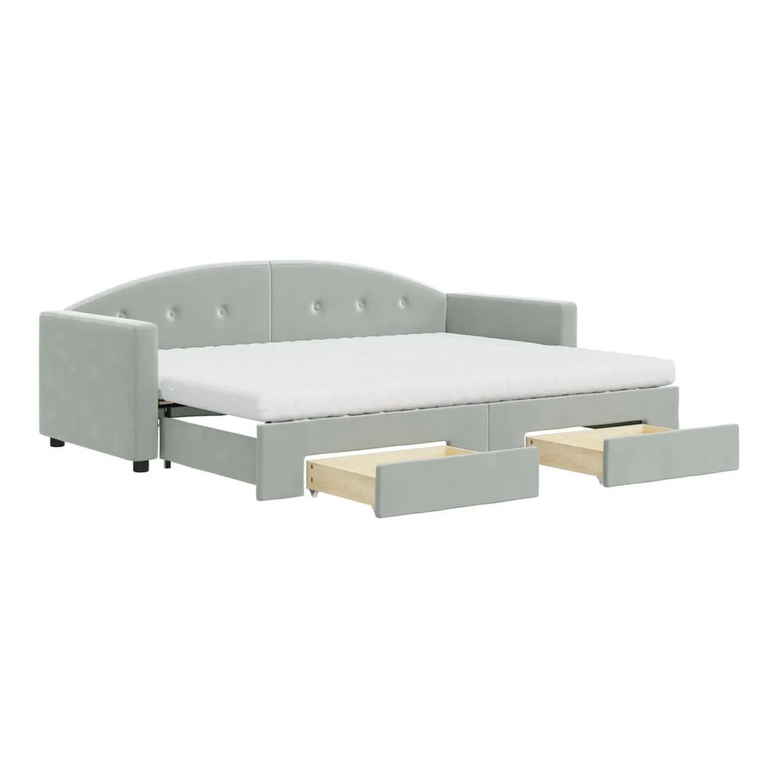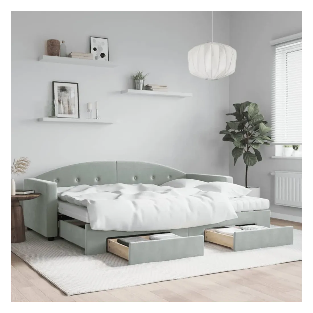 Ce lit de repos 2 en 1 avec lit gigogne et tiroirs, servant à la fois de canapé et de lit, constitue un ajout pratique et accrocheur à votre salon ou chambre à coucher. Lit de repos polyvalent : le canapé-lit fonctionne comme un canapé pendant la journée et se transforme facilement en lit double la nuit en retirant le lit gigogne, offrant une solution pratique pour accueillir des invités et maximiser l'espace. Grand espace de rangement : ce lit d'appoint dispose de deux tiroirs à roulettes qui offrent suffisamment d'espace pour ranger vos vêtements, chaussettes, jouets, coussins, etc. Matelas en mousse confortable : ce lit est fourni avec deux matelas en mousse pour un soutien maximal et un confort optimal. Velours doux et construction solide : ce canapé-lit a un cadre robuste en bois et en métal et est recouvert de velours doux et confortable.