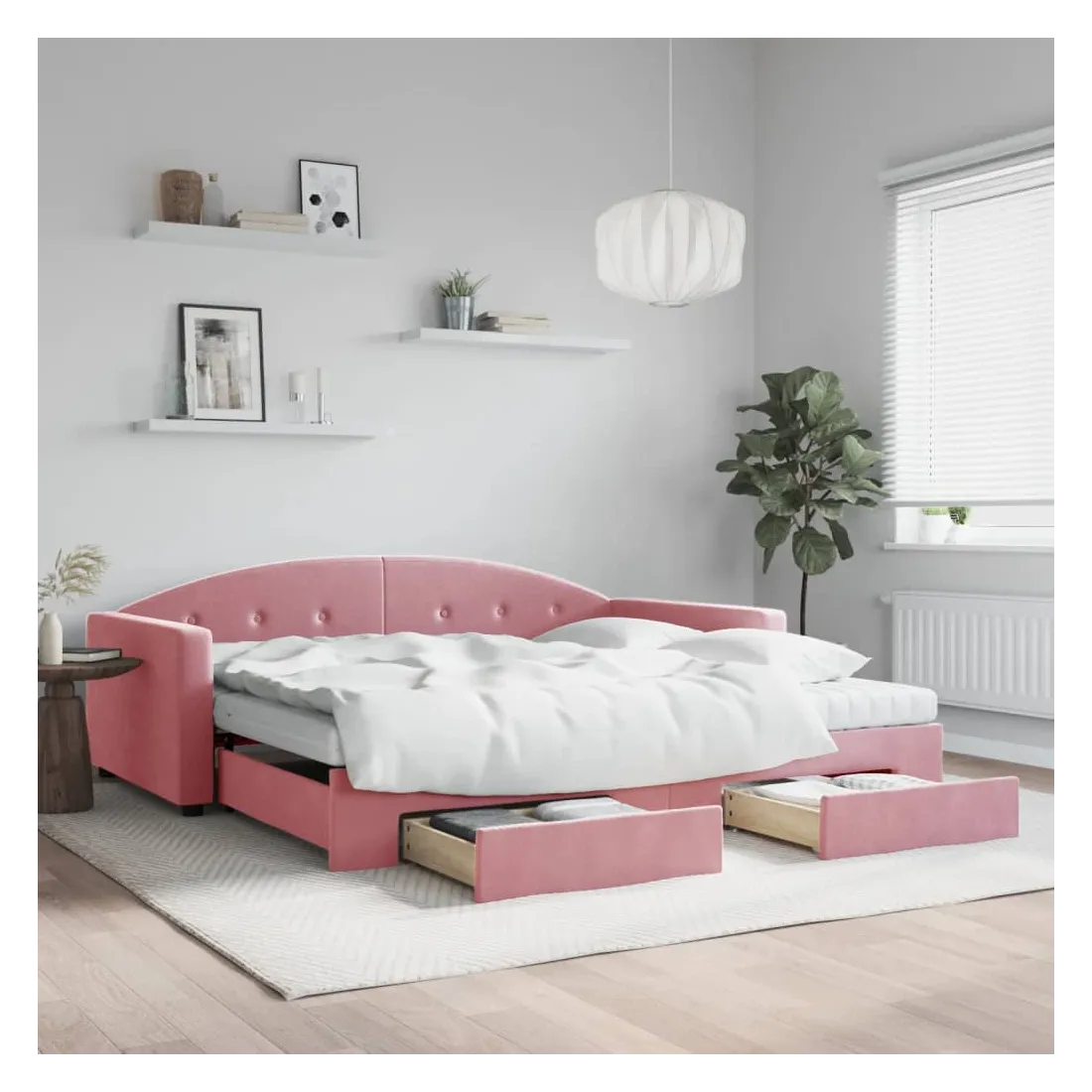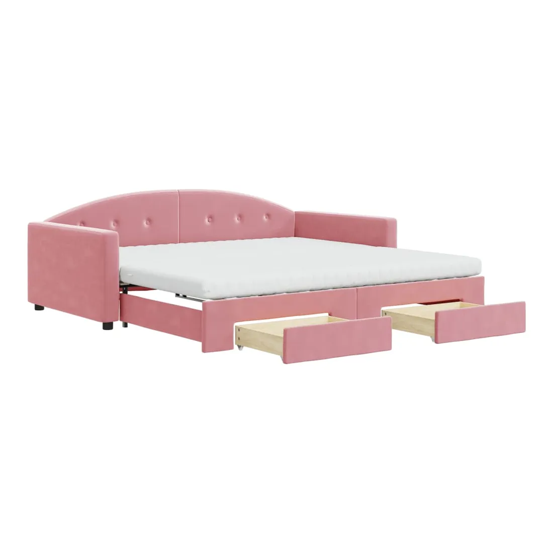 Ce lit de repos 2 en 1 avec lit gigogne et tiroirs, servant à la fois de canapé et de lit, constitue un ajout pratique et accrocheur à votre salon ou chambre à coucher. Lit de repos polyvalent : le canapé-lit fonctionne comme un canapé pendant la journée et se transforme facilement en lit double la nuit en retirant le lit gigogne, offrant une solution pratique pour accueillir des invités et maximiser l'espace. Grand espace de rangement : ce lit d'appoint dispose de deux tiroirs à roulettes qui offrent suffisamment d'espace pour ranger vos vêtements, chaussettes, jouets, coussins, etc. Matelas en mousse confortable : ce lit est fourni avec deux matelas en mousse pour un soutien maximal et un confort optimal. Velours doux et construction solide : ce canapé-lit a un cadre robuste en bois et en métal et est recouvert de velours doux et confortable.