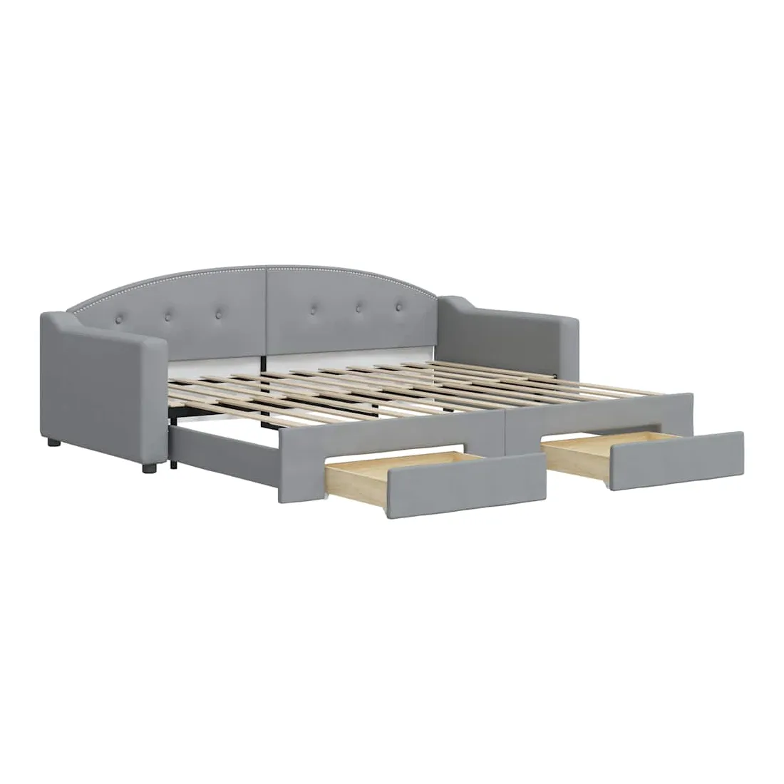Ce lit de repos 2 en 1 avec lit gigogne, servant à la fois de canapé et de lit, constitue un supplément pratique et accrocheur à votre salon ou chambre à coucher. Lit de repos polyvalent : le canapé-lit fonctionne comme un canapé pendant la journée et se transforme facilement en lit double la nuit en retirant le lit gigogne, offrant une solution pratique pour accueillir des invités et maximiser l'espace. Grand espace de rangement : ce lit d'appoint dispose de deux tiroirs à roulettes qui offrent suffisamment d'espace pour ranger vos vêtements, chaussettes, jouets, coussins, etc. Tissu durable et construction solide : ce canapé-lit a une structure robuste en bois et en métal et est recouvert d'un tissu durable et confortable. Bon à savoir :Les matelas ne sont pas inclus avec ce lit de repos. Nous proposons une sélection variée de matelas. Vous pouvez consulter notre boutique pour les matelas assortis.