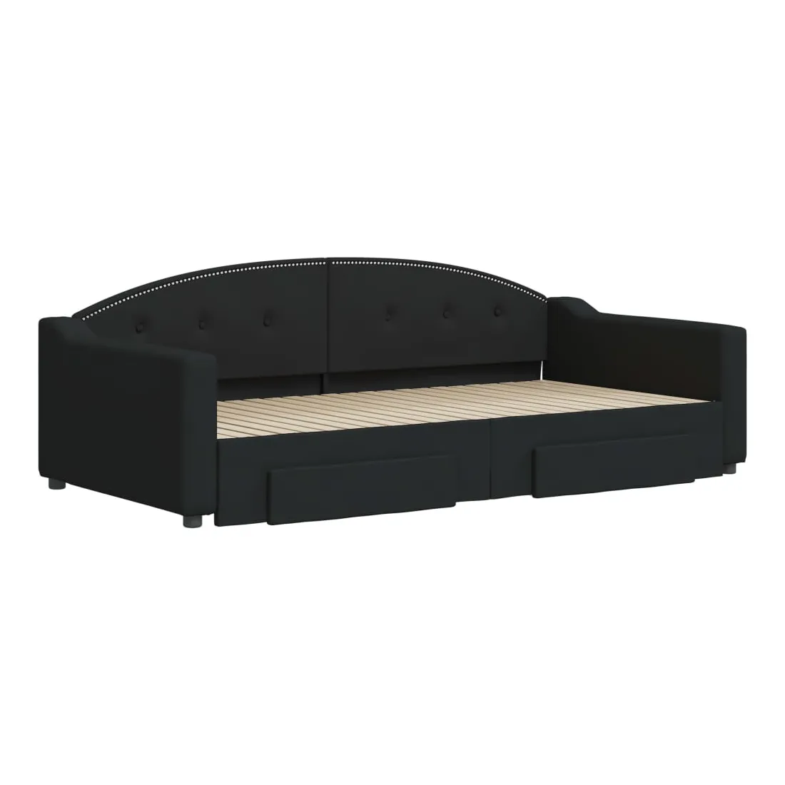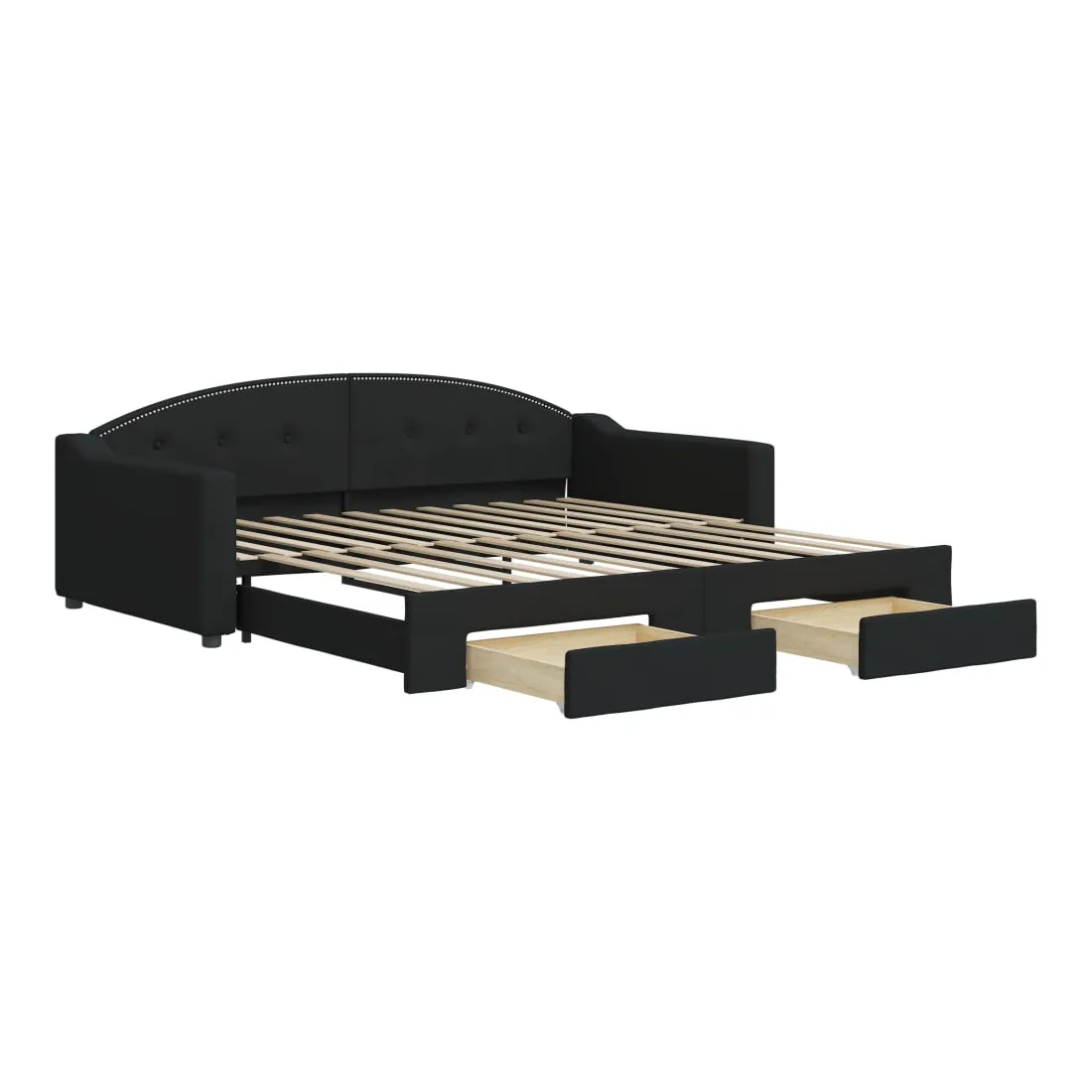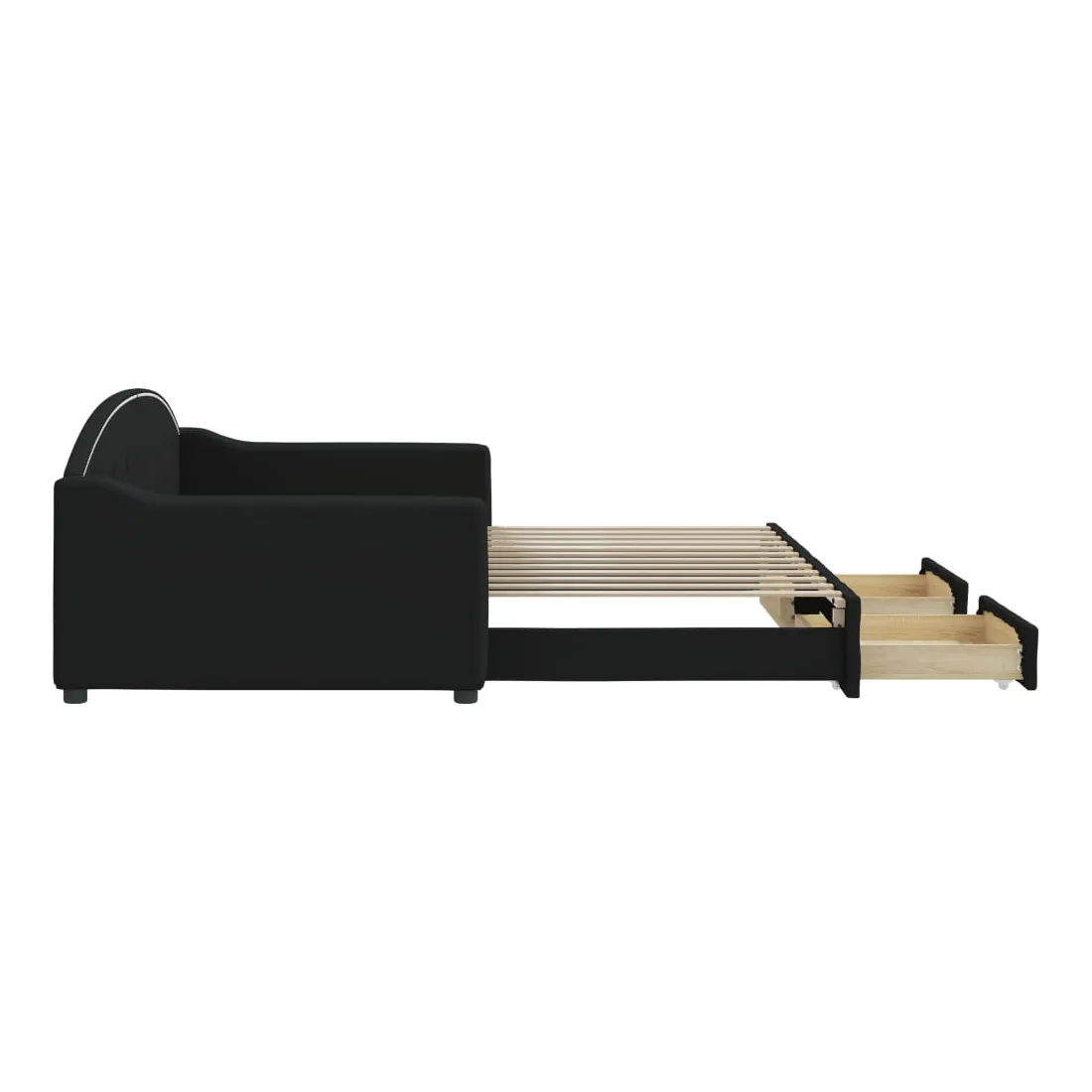 Ce lit de repos 2 en 1 avec lit gigogne, servant à la fois de canapé et de lit, constitue un supplément pratique et accrocheur à votre salon ou chambre à coucher. Lit de repos polyvalent : le canapé-lit fonctionne comme un canapé pendant la journée et se transforme facilement en lit double la nuit en retirant le lit gigogne, offrant une solution pratique pour accueillir des invités et maximiser l'espace. Grand espace de rangement : ce lit d'appoint dispose de deux tiroirs à roulettes qui offrent suffisamment d'espace pour ranger vos vêtements, chaussettes, jouets, coussins, etc. Tissu durable et construction solide : ce canapé-lit a une structure robuste en bois et en métal et est recouvert d'un tissu durable et confortable. Bon à savoir :Les matelas ne sont pas inclus avec ce lit de repos. Nous proposons une sélection variée de matelas. Vous pouvez consulter notre boutique pour les matelas assortis.
