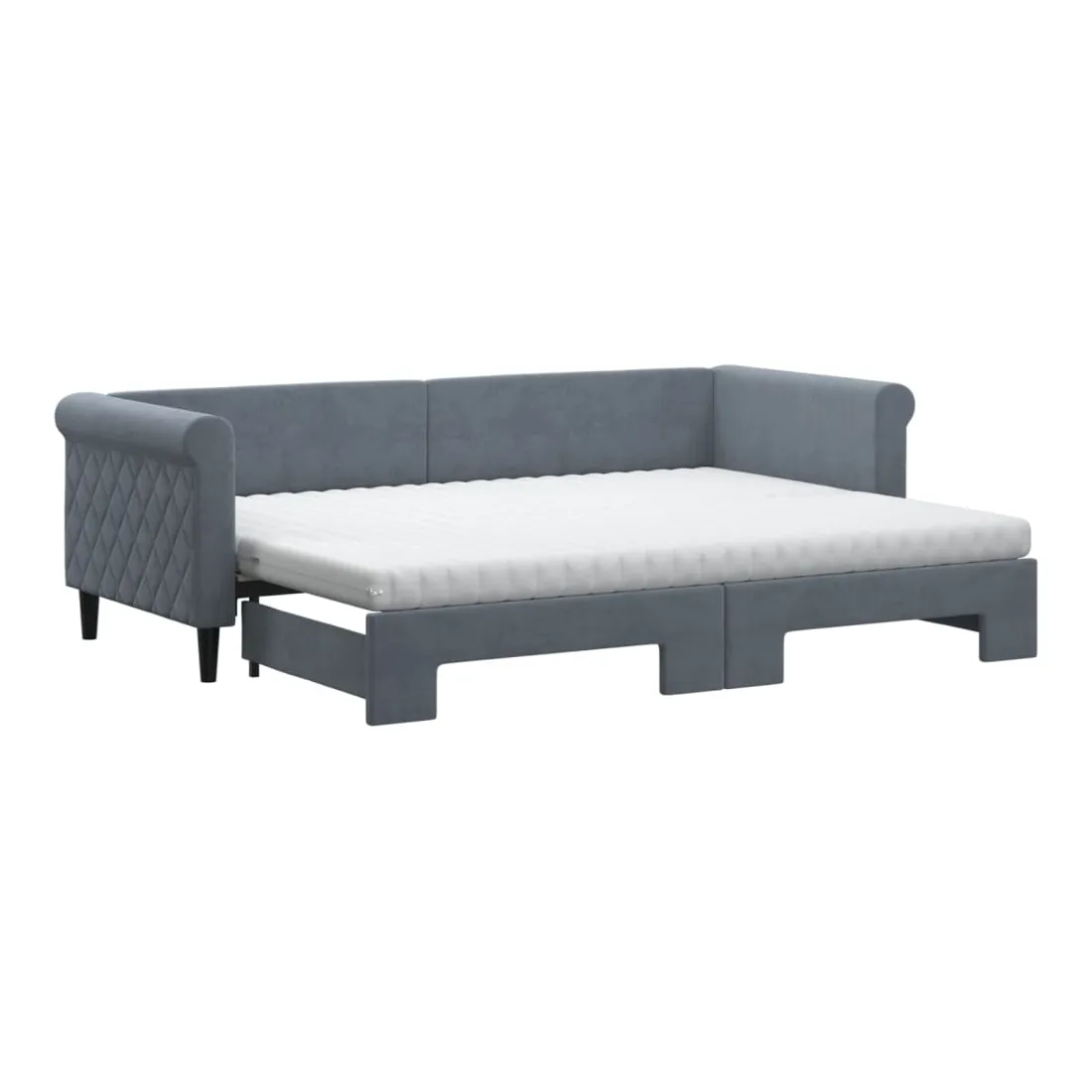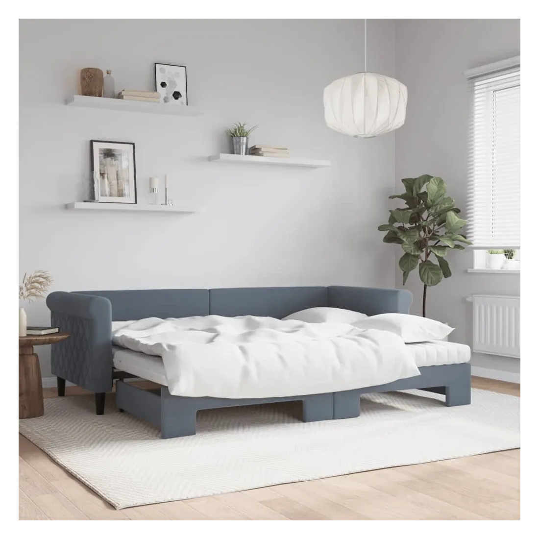 Ce lit de repos 2 en 1 avec lit gigogne, servant à la fois de canapé et de lit, constitue un supplément pratique et accrocheur à votre salon ou chambre à coucher. Lit de repos polyvalent : le canapé-lit fonctionne comme un canapé pendant la journée et se transforme facilement en lit double la nuit en retirant le lit gigogne, offrant une solution pratique pour accueillir des invités et maximiser l'espace.Matelas en mousse confortable : ce lit est fourni avec deux matelas en mousse pour un soutien maximal et un confort optimal.Velours doux et construction solide : ce canapé-lit a un cadre robuste en bois et en métal et est recouvert de velours doux et confortable.Design moderne : le canapé-lit a un design moderne qui présente des lignes épurées, un aspect minimaliste, ainsi que de la lumière naturelle, et ajoutera un style moderne à votre intérieur !