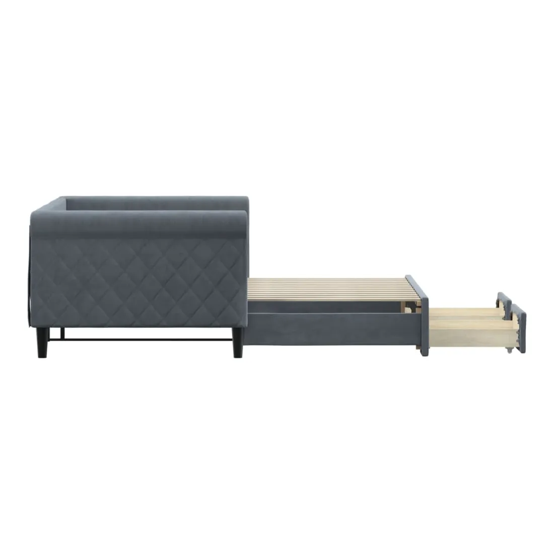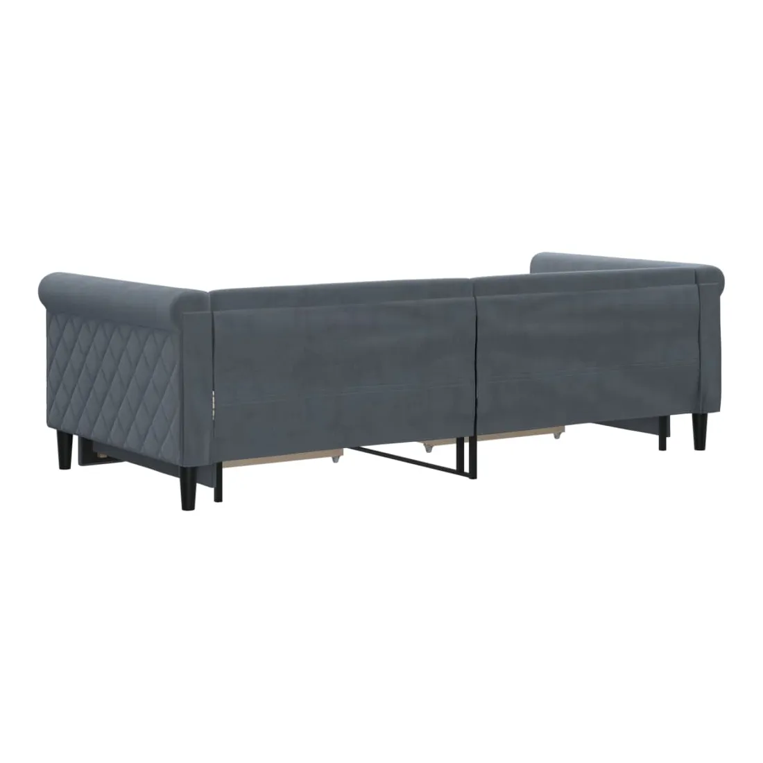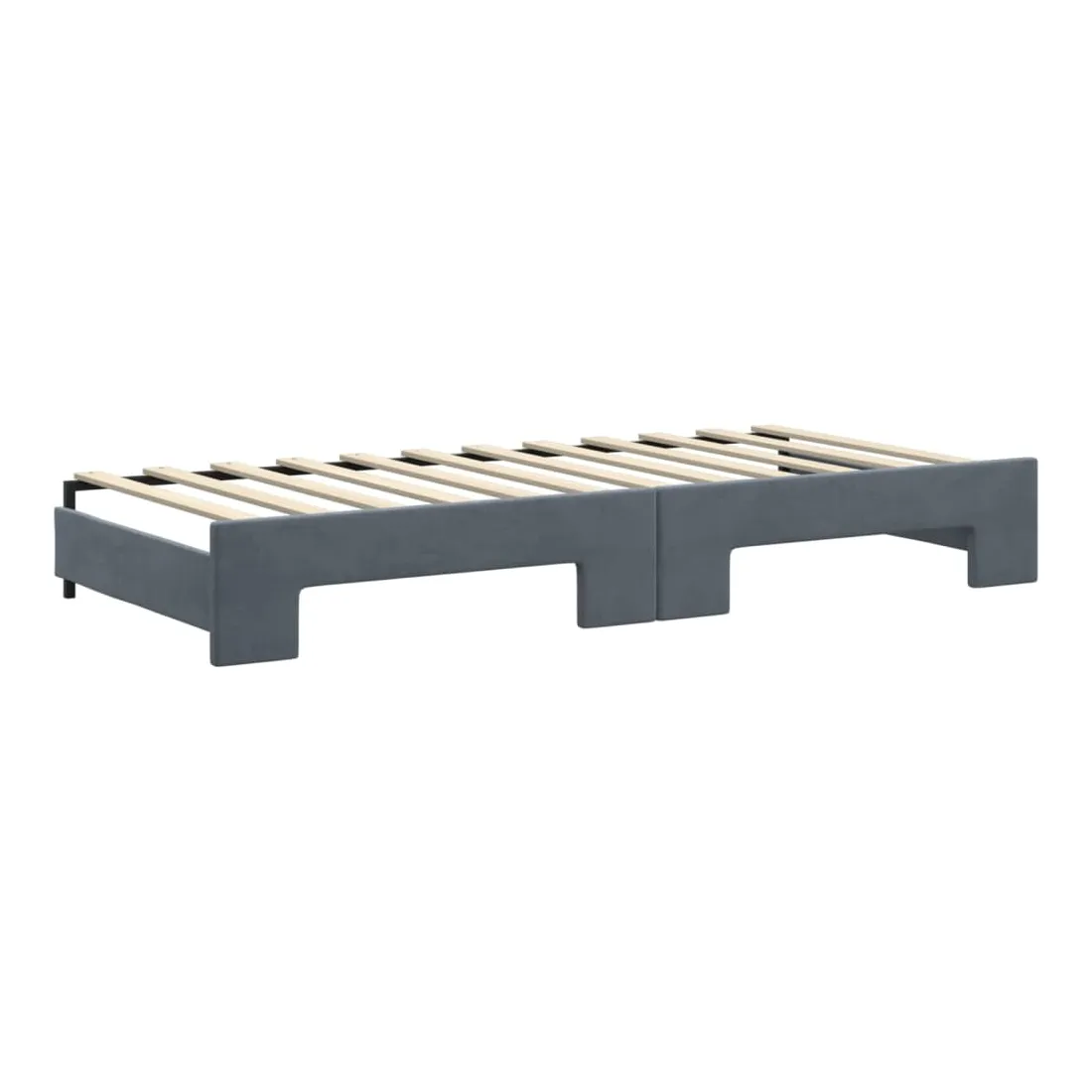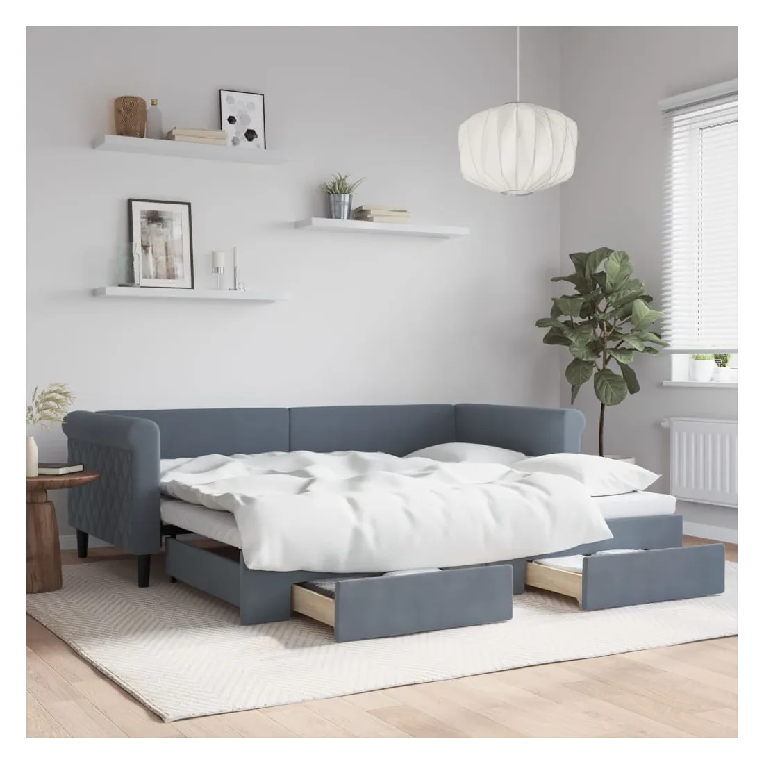 Ce lit de repos 2 en 1 avec lit gigogne, servant à la fois de canapé et de lit, constitue un supplément pratique et accrocheur à votre salon ou chambre à coucher. Lit de repos polyvalent : le canapé-lit fonctionne comme un canapé pendant la journée et se transforme facilement en lit double la nuit en retirant le lit gigogne, offrant une solution pratique pour accueillir des invités et maximiser l'espace.Grand espace de rangement : ce lit d'appoint dispose de deux tiroirs à roulettes qui offrent suffisamment d'espace pour ranger vos vêtements, chaussettes, jouets, coussins, etc.Velours doux et construction solide : ce canapé-lit a un cadre robuste en bois et en métal et est recouvert de velours doux et confortable.Design moderne : le canapé-lit a un design moderne qui présente des lignes épurées, un aspect minimaliste, ainsi que de la lumière naturelle, et ajoutera un style moderne à votre intérieur ! Bon à savoir :Les matelas ne sont pas inclus avec ce lit. Nous proposons une sélection variée de matelas. Vous pouvez consulter notre boutique pour trouver les matelas assortis.