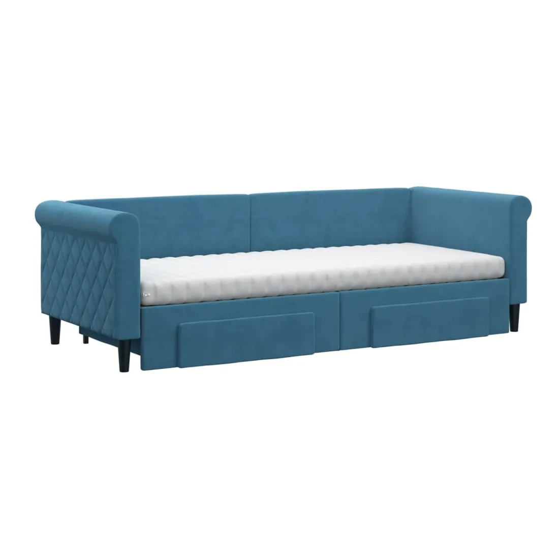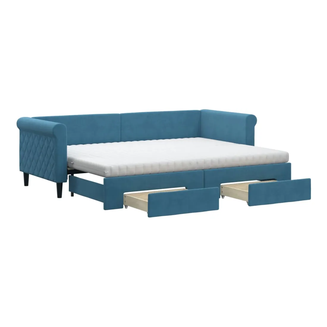 Ce lit de repos 2 en 1 avec lit gigogne, servant à la fois de canapé et de lit, constitue un supplément pratique et accrocheur à votre salon ou chambre à coucher. Lit de repos polyvalent : le canapé-lit fonctionne comme un canapé pendant la journée et se transforme facilement en lit double la nuit en retirant le lit gigogne, offrant une solution pratique pour accueillir des invités et maximiser l'espace.Grand espace de rangement : ce lit d'appoint dispose de deux tiroirs à roulettes qui offrent suffisamment d'espace pour ranger vos vêtements, chaussettes, jouets, coussins, etc.Matelas en mousse confortable : ce lit est fourni avec deux matelas en mousse pour un soutien maximal et un confort optimal.Velours doux et construction solide : ce canapé-lit a un cadre robuste en bois et en métal et est recouvert de velours doux et confortable.