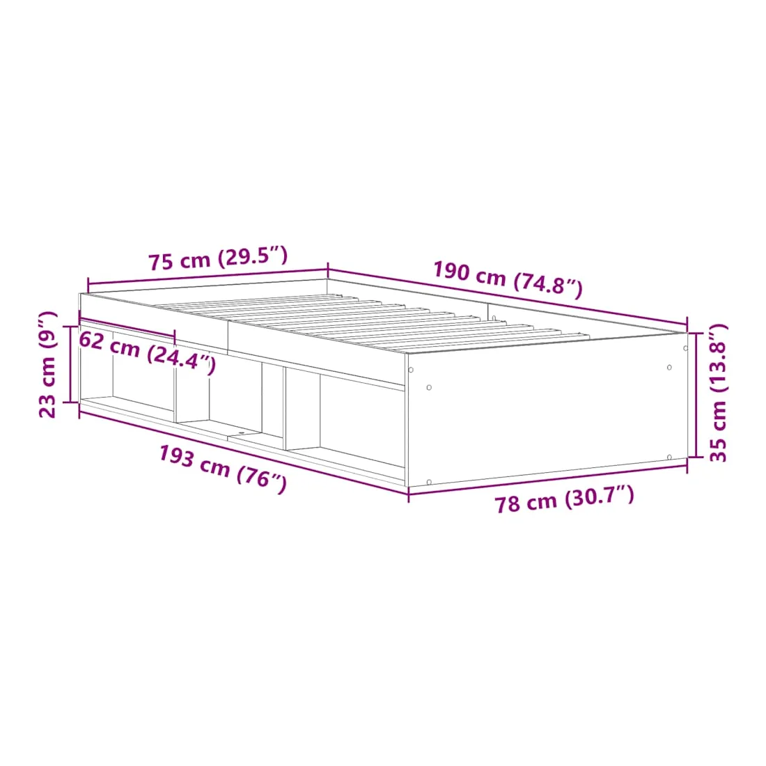 - Dimensions totales : 193 x 78 x 35 cm (L x l x H)