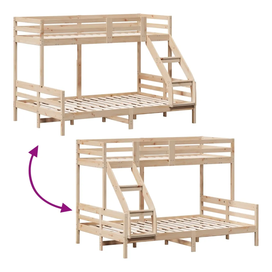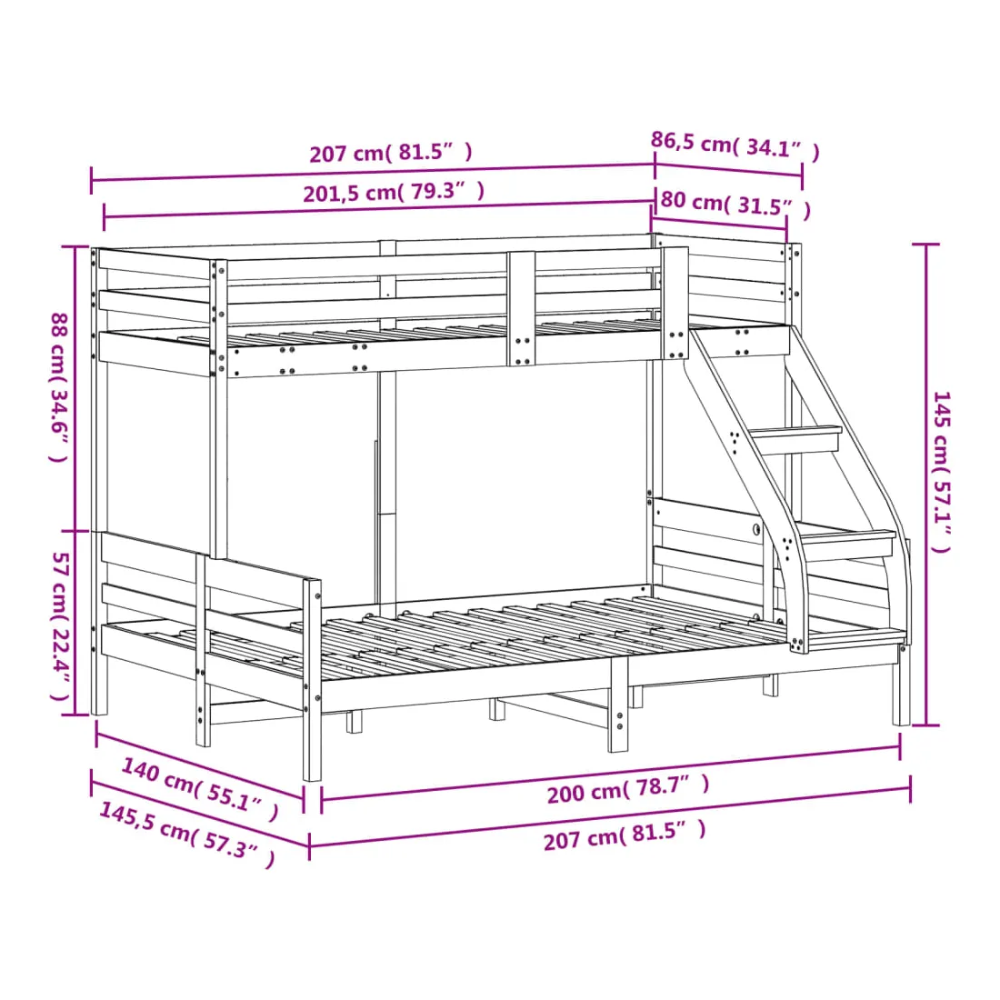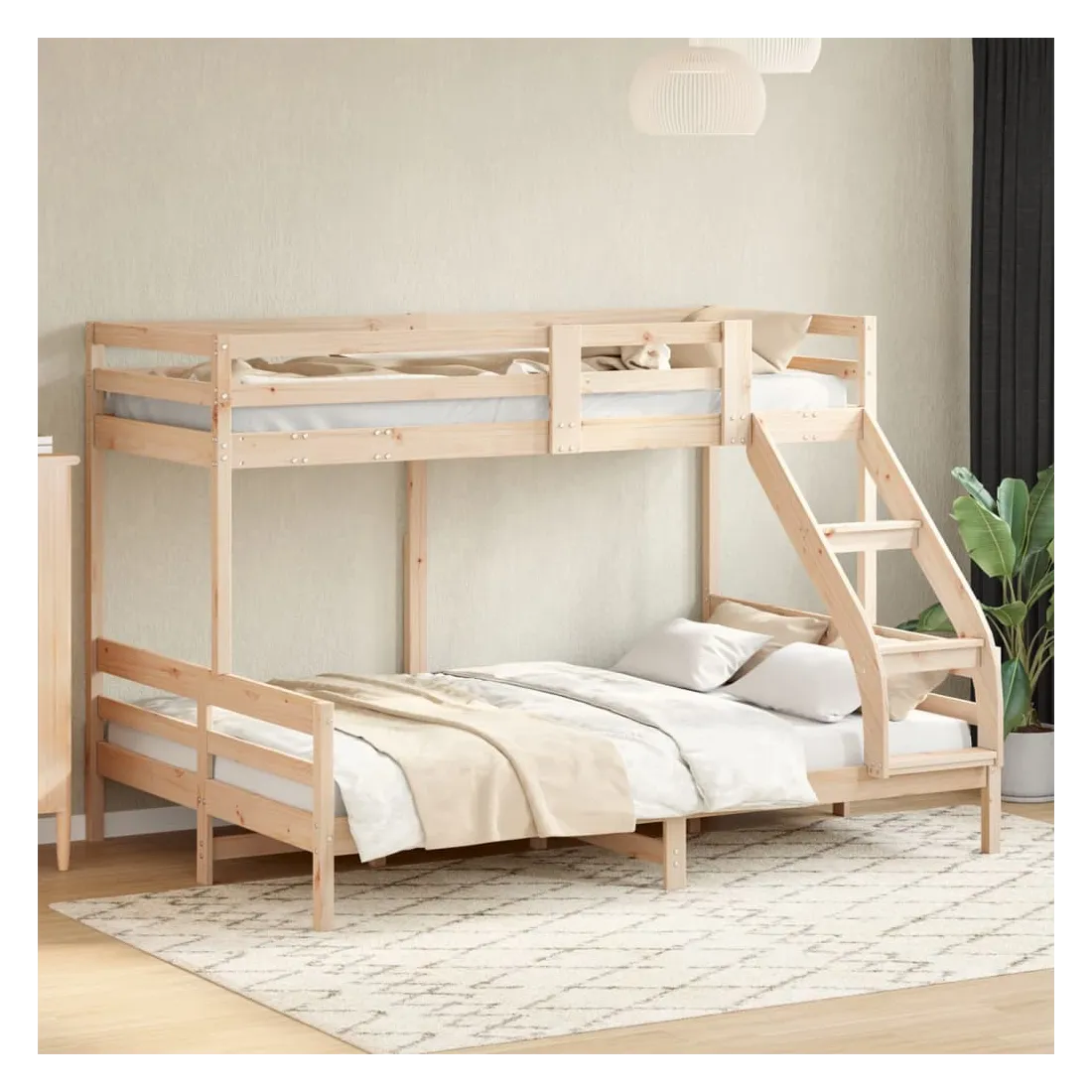 Ce lit superposé en bois est élégant et fonctionnel, ce qui en fait un supplément parfait à toute pièce dont l'espace est limité. Bois de pin massif : le bois de pin massif est un matériau naturel magnifique. Le bois de pin a un grain droit et les nœuds donnent au matériau son aspect caractéristique et rustique.Design sûr : le lit surélevé est conçu dans un souci de sécurité. Il comprend des garde-corps qui empêchent l'utilisateur de rouler pendant son sommeil.Convient aux espaces limités : le cadre de lit est un excellent choix pour toute pièce dont l'espace est limité, il fournit deux lits individuels avec un design compact. Bon à savoir :La livraison comprend uniquement un cadre de lit. Le matelas n'est pas inclus. Vous pouvez consulter notre boutique pour trouver les matelas assortis.