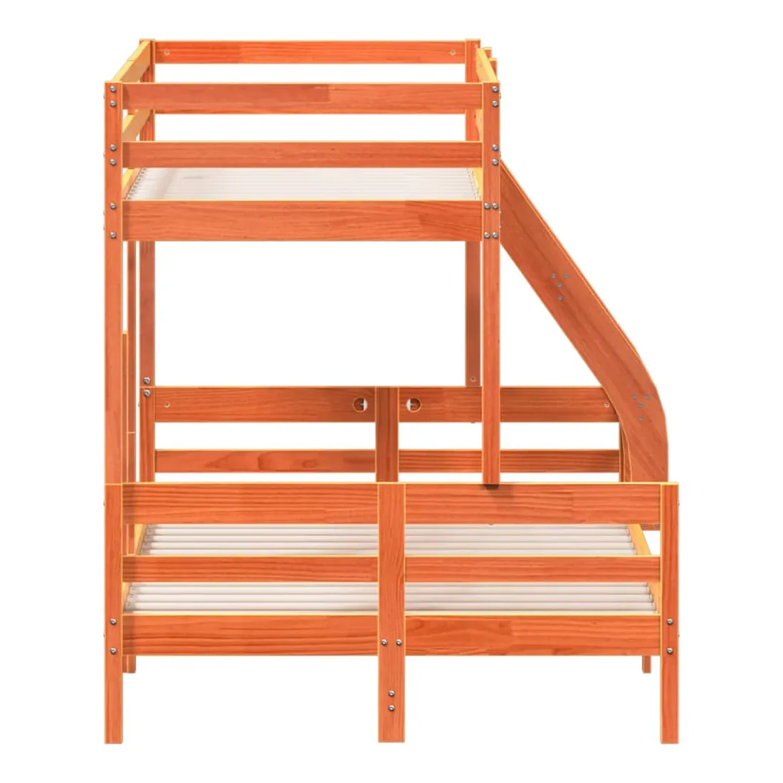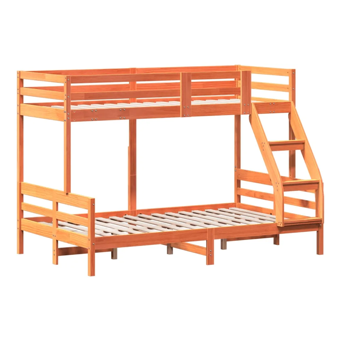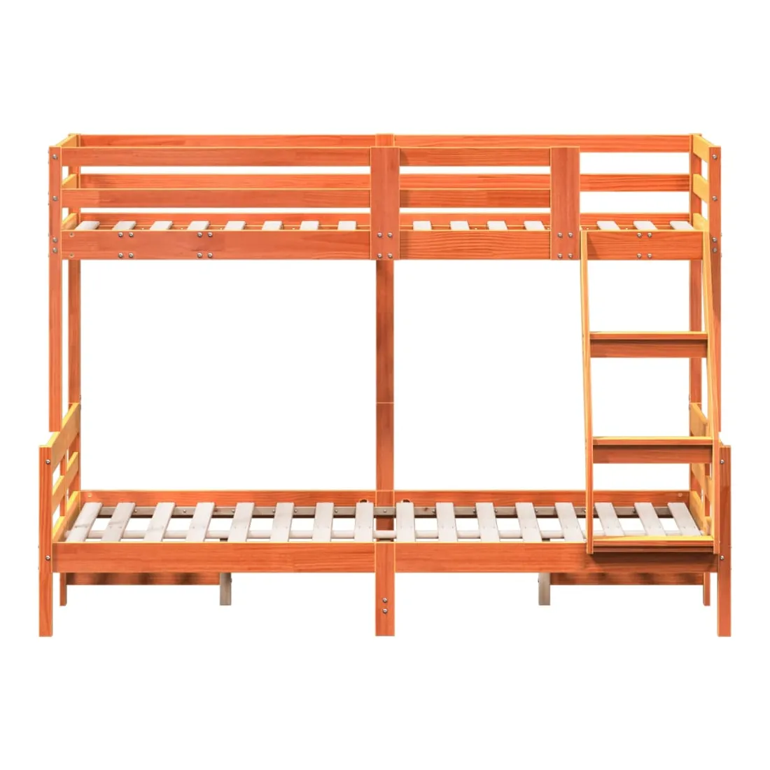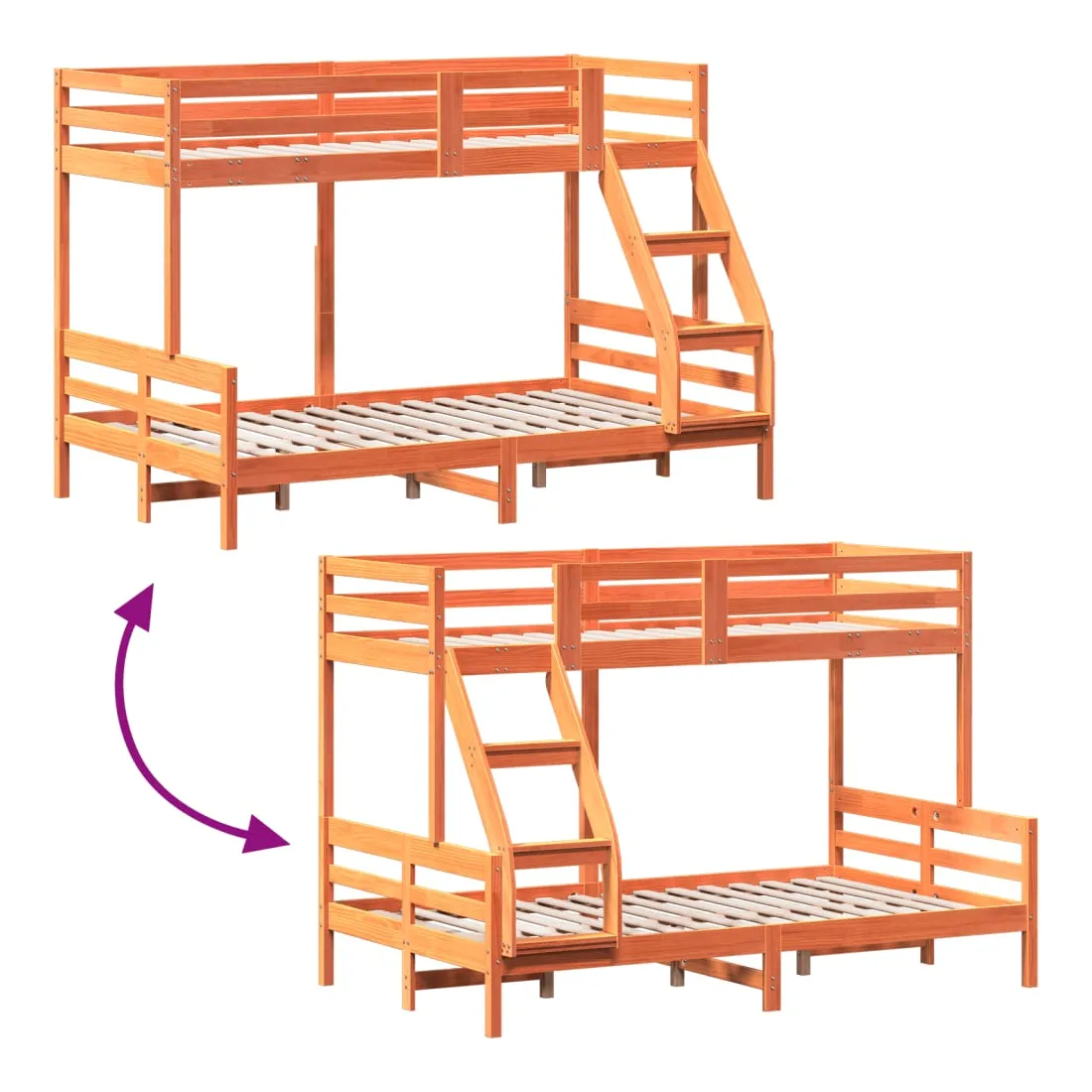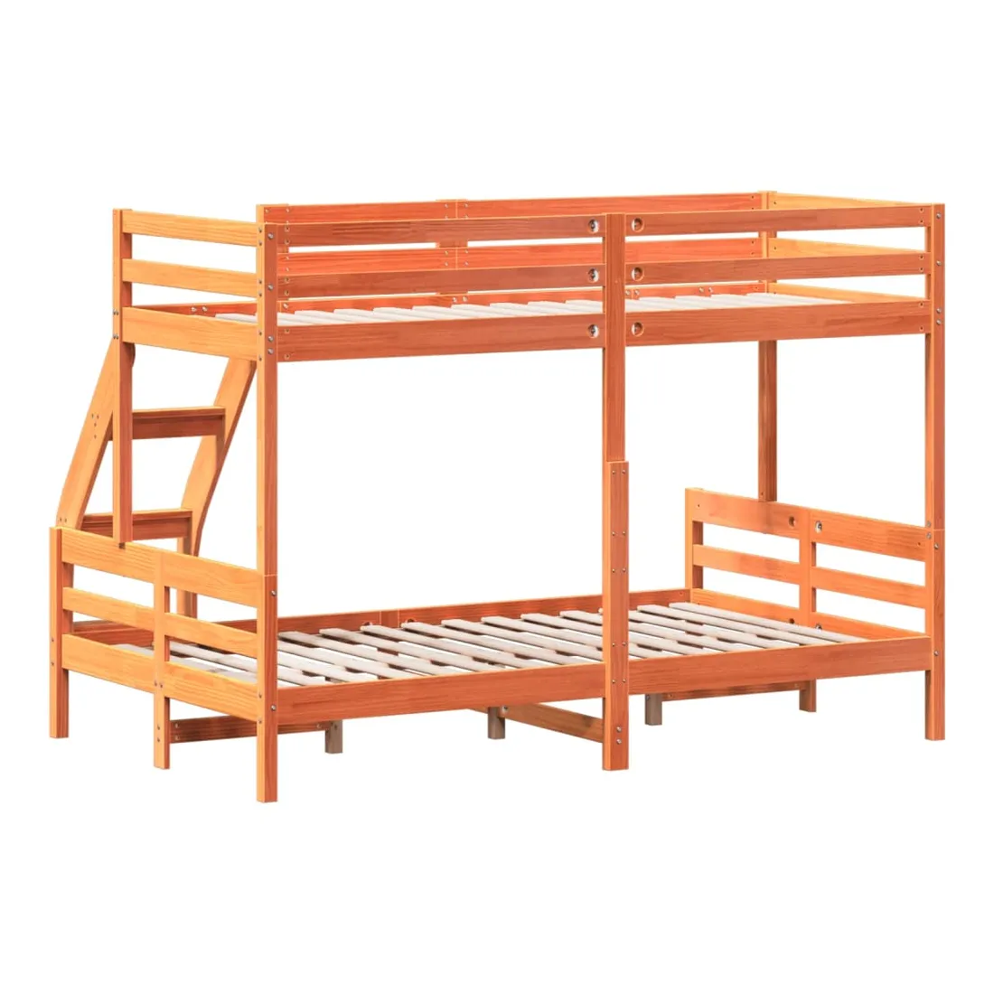 Ce lit superposé en bois est élégant et fonctionnel, ce qui en fait un supplément parfait à toute pièce dont l'espace est limité. Bois de pin massif : le bois de pin massif est un matériau naturel magnifique. Le bois de pin a un grain droit et les nœuds donnent au matériau son aspect caractéristique et rustique.Design sûr : le lit surélevé est conçu dans un souci de sécurité. Il comprend des garde-corps qui empêchent l'utilisateur de rouler pendant son sommeil.Convient aux espaces limités : le cadre de lit est un excellent choix pour toute pièce dont l'espace est limité, il fournit deux lits individuels avec un design compact. Bon à savoir :La livraison comprend uniquement un cadre de lit. Le matelas n'est pas inclus. Vous pouvez consulter notre boutique pour trouver les matelas assortis.