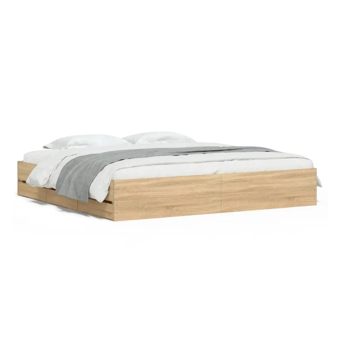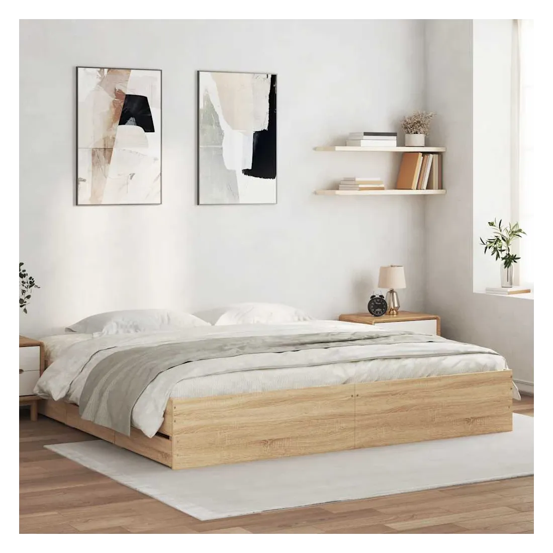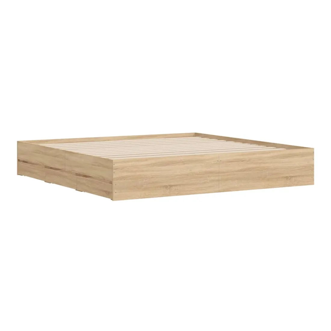 Ajoutez une touche moderne à votre chambre à coucher avec ce cadre de lit avec tiroirs ! Il apportera une touche pratique et décorative à votre espace de vie. Matériau durable : le cadre de lit est fabriquée en bois d'ingénierie. Le bois d'ingénierie est d'une qualité exceptionnelle avec une surface lisse et présente également de la résistance, de la stabilité et de la résistance à l'humidité.Lattes robustes : les lattes de contreplaqué assurent une bonne répartition du poids, garantissant que le matelas reste en place à chaque torsion de votre corps pendant le sommeil.Fonction de rangement : les tiroirs de lit inclus offrent suffisamment d'espace de rangement pour ranger vos articles essentiels, gardant votre pièce propre et bien rangée. Bon à savoir :Un matelas n'est pas inclus avec ce lit. Nous offrons une sélection variée de matelas. Vous pouvez consulter notre boutique pour trouver un matelas assorti.