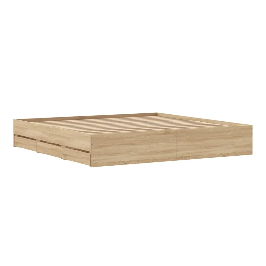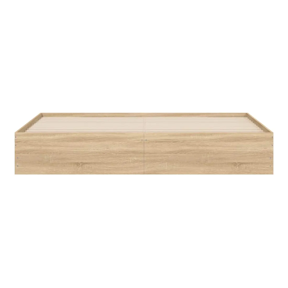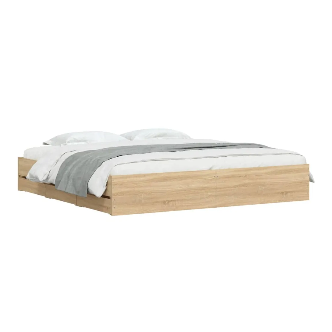 Ajoutez une touche moderne à votre chambre à coucher avec ce cadre de lit avec tiroirs ! Il apportera une touche pratique et décorative à votre espace de vie. Matériau durable : le cadre de lit est fabriquée en bois d'ingénierie. Le bois d'ingénierie est d'une qualité exceptionnelle avec une surface lisse et présente également de la résistance, de la stabilité et de la résistance à l'humidité.Lattes robustes : les lattes de contreplaqué assurent une bonne répartition du poids, garantissant que le matelas reste en place à chaque torsion de votre corps pendant le sommeil.Fonction de rangement : les tiroirs de lit inclus offrent suffisamment d'espace de rangement pour ranger vos articles essentiels, gardant votre pièce propre et bien rangée. Bon à savoir :Un matelas n'est pas inclus avec ce lit. Nous offrons une sélection variée de matelas. Vous pouvez consulter notre boutique pour trouver un matelas assorti.