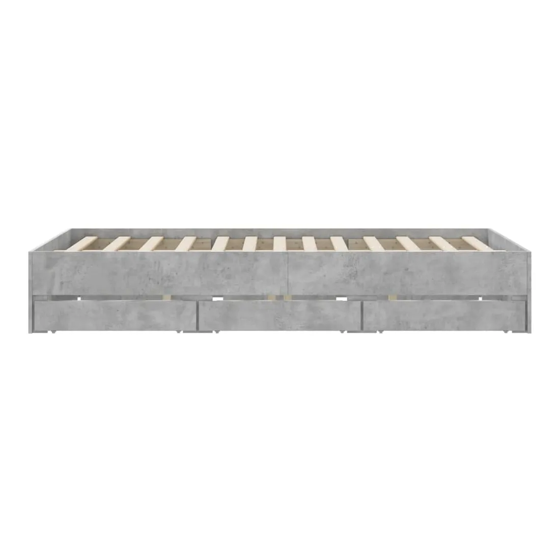 Ajoutez une touche moderne à votre chambre à coucher avec ce cadre de lit avec tiroirs ! Il apportera une touche pratique et décorative à votre espace de vie. Matériau durable : le cadre de lit est fabriquée en bois d'ingénierie. Le bois d'ingénierie est d'une qualité exceptionnelle avec une surface lisse et présente également de la résistance, de la stabilité et de la résistance à l'humidité.Lattes robustes : les lattes de contreplaqué assurent une bonne répartition du poids, garantissant que le matelas reste en place à chaque torsion de votre corps pendant le sommeil.Fonction de rangement : les tiroirs de lit inclus offrent suffisamment d'espace de rangement pour ranger vos articles essentiels, gardant votre pièce propre et bien rangée. Bon à savoir :Un matelas n'est pas inclus avec ce lit. Nous offrons une sélection variée de matelas. Vous pouvez consulter notre boutique pour trouver un matelas assorti.