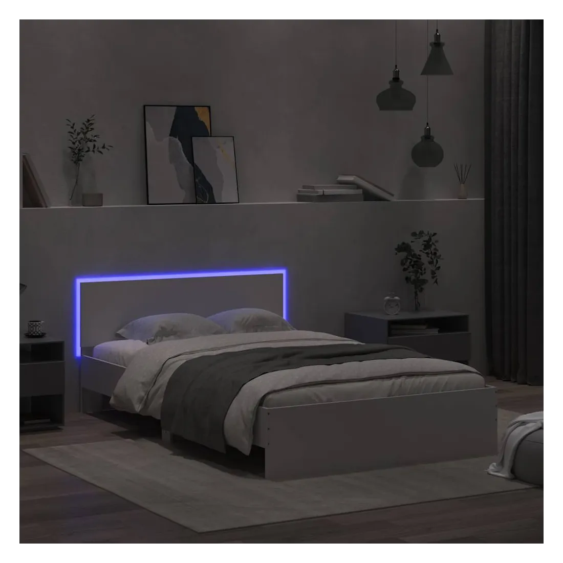 Obtenez une meilleure nuit de sommeil reposante grâce à ce cadre de lit avec LED ! Il est un supplément accueillant à toute chambre à coucher. Matériau durable : le bois d'ingénierie est d'une qualité exceptionnelle avec une surface lisse et présente également résistance, stabilité et résistance à l'humidité.Lumières LED RVB : le lit est équipé de lumières LED RVB vibrantes. Avec divers menus personnalisables, vous pouvez changer sans effort la couleur des lumières et même les régler automatiquement. Ces lumières LED renforcent non seulement l'aspect contemporain du lit, mais ajoutent également à son attrait tendance.Excellent soutien : la tête de lit vous offre un excellent soutien du dos lorsque vous êtes assis dans votre lit pour lire ou regarder la télévision.Lattes robustes : les lattes de contreplaqué assurent une bonne répartition du poids, garantissant que le matelas reste en place à chaque torsion de votre corps pendant le sommeil. Bon à savoir :Un matelas n'est pas inclus avec ce lit. Nous offrons une sélection variée de matelas. Vous pouvez consulter notre boutique pour trouver un matelas assorti.Ce produit est doté d'un connecteur USB qui nécessite une source d'alimentation USB de 5V certifiée (non incluse).