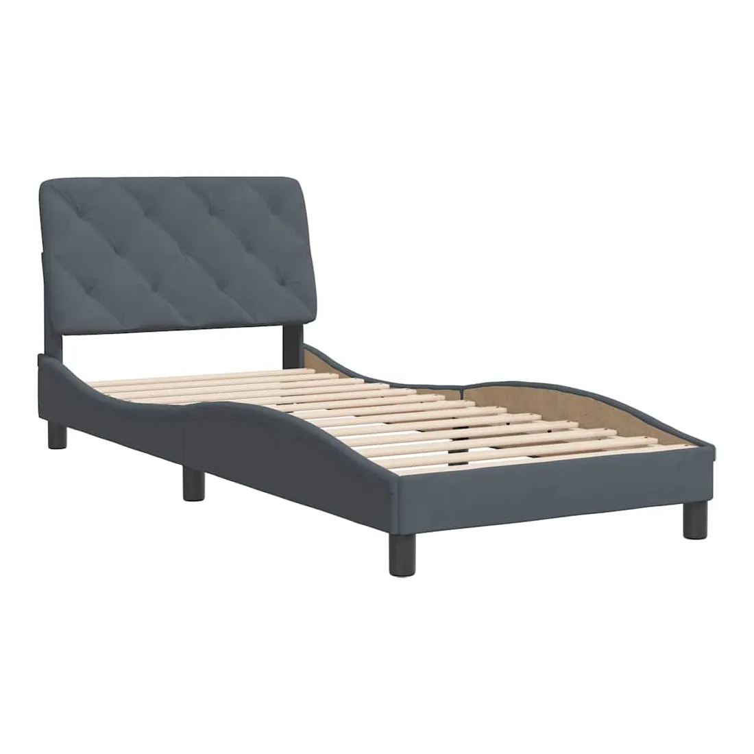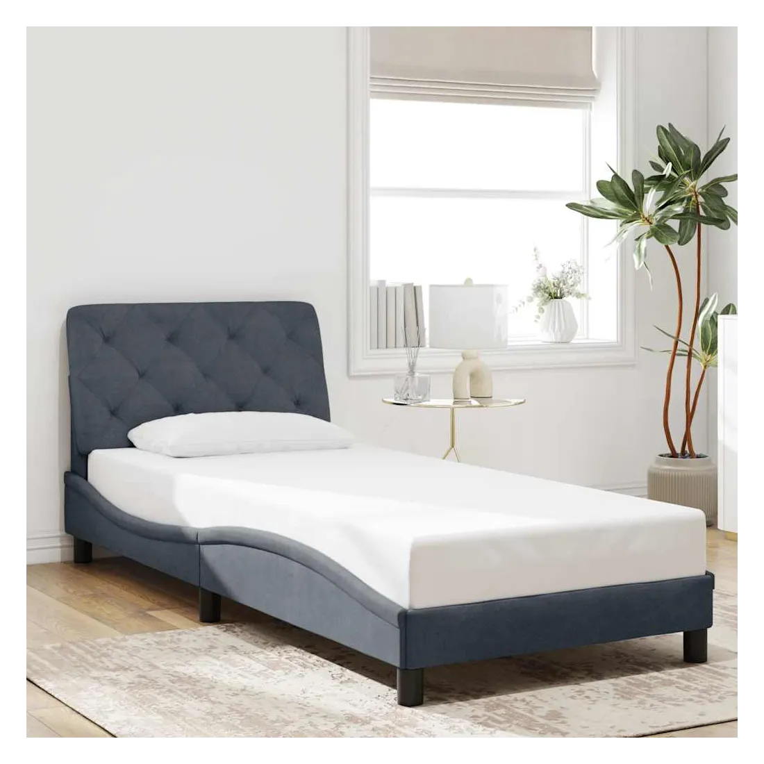Obtenez une meilleure nuit de sommeil reposante grâce à ce cadre de lit avec tête de lit ! Il est un supplément accueillant à toute chambre à coucher. Velours doux : le velours est un tissu doux et confortable, agréable au toucher.Lattes de contreplaqué : les lattes de contreplaqué assurent une bonne répartition du poids, garantissant que le matelas reste en place à chaque torsion de votre corps pendant le sommeil.Excellent soutien : l'oreiller de tête de lit est rembourré avec de la mousse pour un confort ultra doux et optimal vous offre un excellent soutien du dos lorsque vous êtes assis dans votre lit pour lire ou regarder la télévision.Design pratique : le coussin de la tête de lit est doté d'une fermeture à glissière pour faciliter l'installation, et les bandes auto-agrippantes au dos peuvent être utilisées pour fixer les lampes LED.Design latéral ondulé : l’aspect ondulé du cadre de lit est élégant et sophistiqué, ajoutant une touche moderne et élégante à votre décor, ce qui en fait le point central de votre chambre à coucher. Bon à savoir :Un matelas n'est pas inclus avec ce lit. Nous offrons une sélection variée de matelas. Vous pouvez consulter notre boutique pour trouver un matelas assorti.