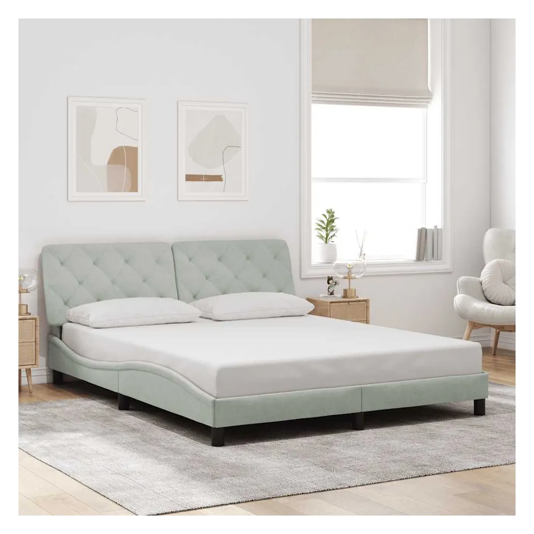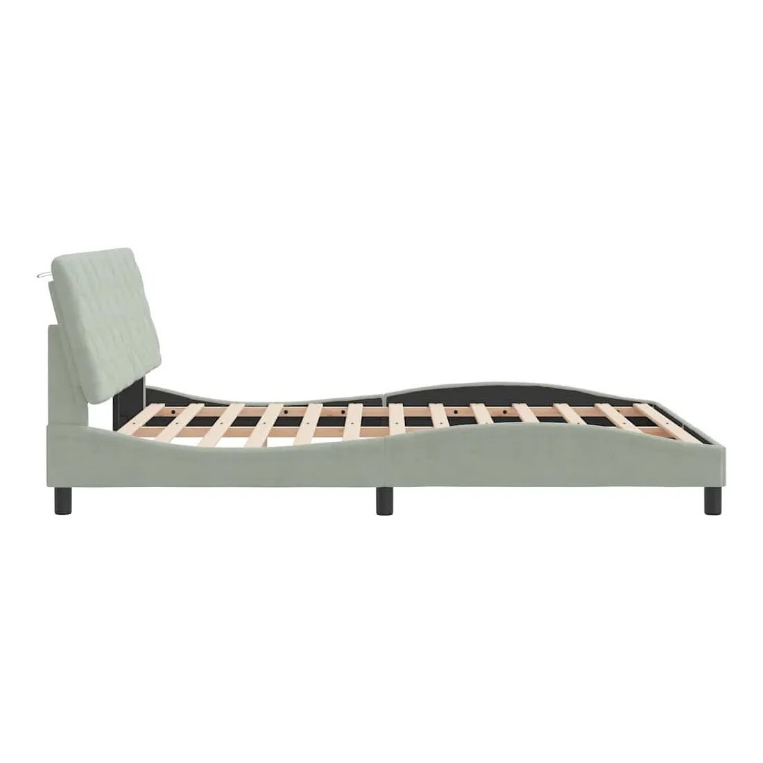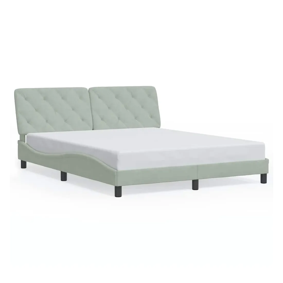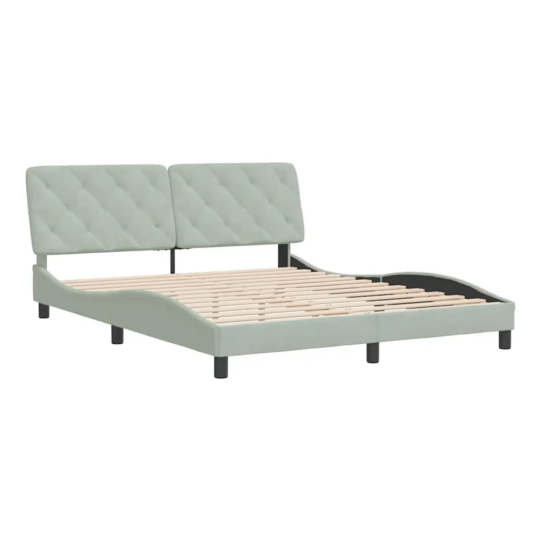 Obtenez une meilleure nuit de sommeil reposante grâce à ce cadre de lit avec tête de lit ! Il est un supplément accueillant à toute chambre à coucher. Velours doux : le velours est un tissu doux et confortable, agréable au toucher.Lattes de contreplaqué : les lattes de contreplaqué assurent une bonne répartition du poids, garantissant que le matelas reste en place à chaque torsion de votre corps pendant le sommeil.Excellent soutien : l'oreiller de tête de lit est rembourré avec de la mousse pour un confort ultra doux et optimal vous offre un excellent soutien du dos lorsque vous êtes assis dans votre lit pour lire ou regarder la télévision.Design pratique : le coussin de la tête de lit est doté d'une fermeture à glissière pour faciliter l'installation, et les bandes auto-agrippantes au dos peuvent être utilisées pour fixer les lampes LED.Design latéral ondulé : l’aspect ondulé du cadre de lit est élégant et sophistiqué, ajoutant une touche moderne et élégante à votre décor, ce qui en fait le point central de votre chambre à coucher. Bon à savoir :Un matelas n'est pas inclus avec ce lit. Nous offrons une sélection variée de matelas. Vous pouvez consulter notre boutique pour trouver un matelas assorti.