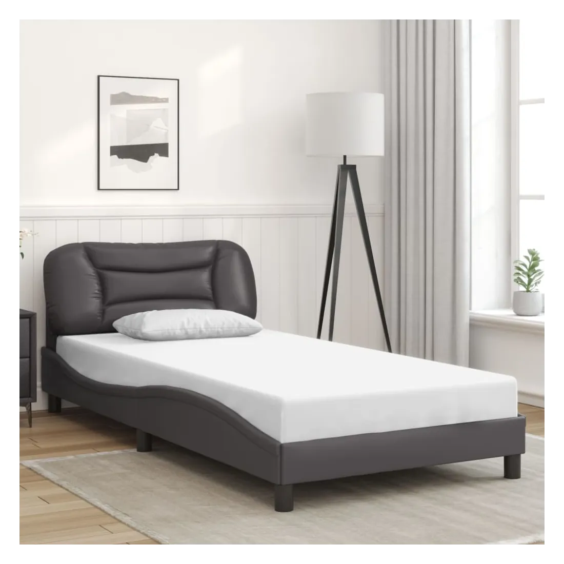 Obtenez une meilleure nuit de sommeil reposante grâce à ce cadre de lit avec tête de lit ! Il est un supplément accueillant à toute chambre à coucher. Similicuir durable : le similicuir de qualité supérieure est un matériau très durable. Il est résistant aux taches, ce qui le rend facile à nettoyer avec un chiffon humide. La surface lisse donne également un aspect luxueux et la beauté du cuir véritable.Lattes de contreplaqué : les lattes de contreplaqué assurent une bonne répartition du poids, garantissant que le matelas reste en place à chaque torsion de votre corps pendant le sommeil.Excellent soutien : l'oreiller de tête de lit est rembourré avec de la fibre de polypropylène pour un confort ultra doux et optimal vous offre un excellent soutien du dos lorsque vous êtes assis dans votre lit pour lire ou regarder la télévision.Design latéral ondulé : l’aspect ondulé du cadre de lit est élégant et sophistiqué, ajoutant une touche moderne et élégante à votre décor, ce qui en fait le point central de votre chambre à coucher. Bon à savoir :Un matelas n'est pas inclus avec ce lit. Nous offrons une sélection variée de matelas. Vous pouvez consulter notre boutique pour trouver un matelas assorti.