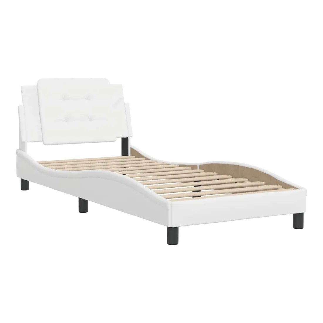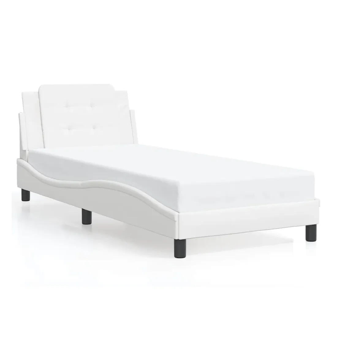 Obtenez une meilleure nuit de sommeil reposante grâce à ce cadre de lit avec tête de lit ! Il est un supplément accueillant à toute chambre à coucher. Similicuir durable : le similicuir de qualité supérieure est un matériau très durable. Il est résistant aux taches, ce qui le rend facile à nettoyer avec un chiffon humide. La surface lisse donne également un aspect luxueux et la beauté du cuir véritable.Lattes de contreplaqué : les lattes de contreplaqué assurent une bonne répartition du poids, garantissant que le matelas reste en place à chaque torsion de votre corps pendant le sommeil.Excellent soutien : l'oreiller de tête de lit est rembourré avec de la mousse pour un confort ultra doux et optimal vous offre un excellent soutien du dos lorsque vous êtes assis dans votre lit pour lire ou regarder la télévision.Design pratique : le coussin de tête de lit est doté d'une fermeture éclair pour une installation facile.Design latéral ondulé : l’aspect ondulé du cadre de lit est élégant et sophistiqué, ajoutant une touche moderne et élégante à votre décor, ce qui en fait le point central de votre chambre à coucher. Bon à savoir :Un matelas n'est pas inclus avec ce lit. Nous offrons une sélection variée de matelas. Vous pouvez consulter notre boutique pour trouver un matelas assorti.