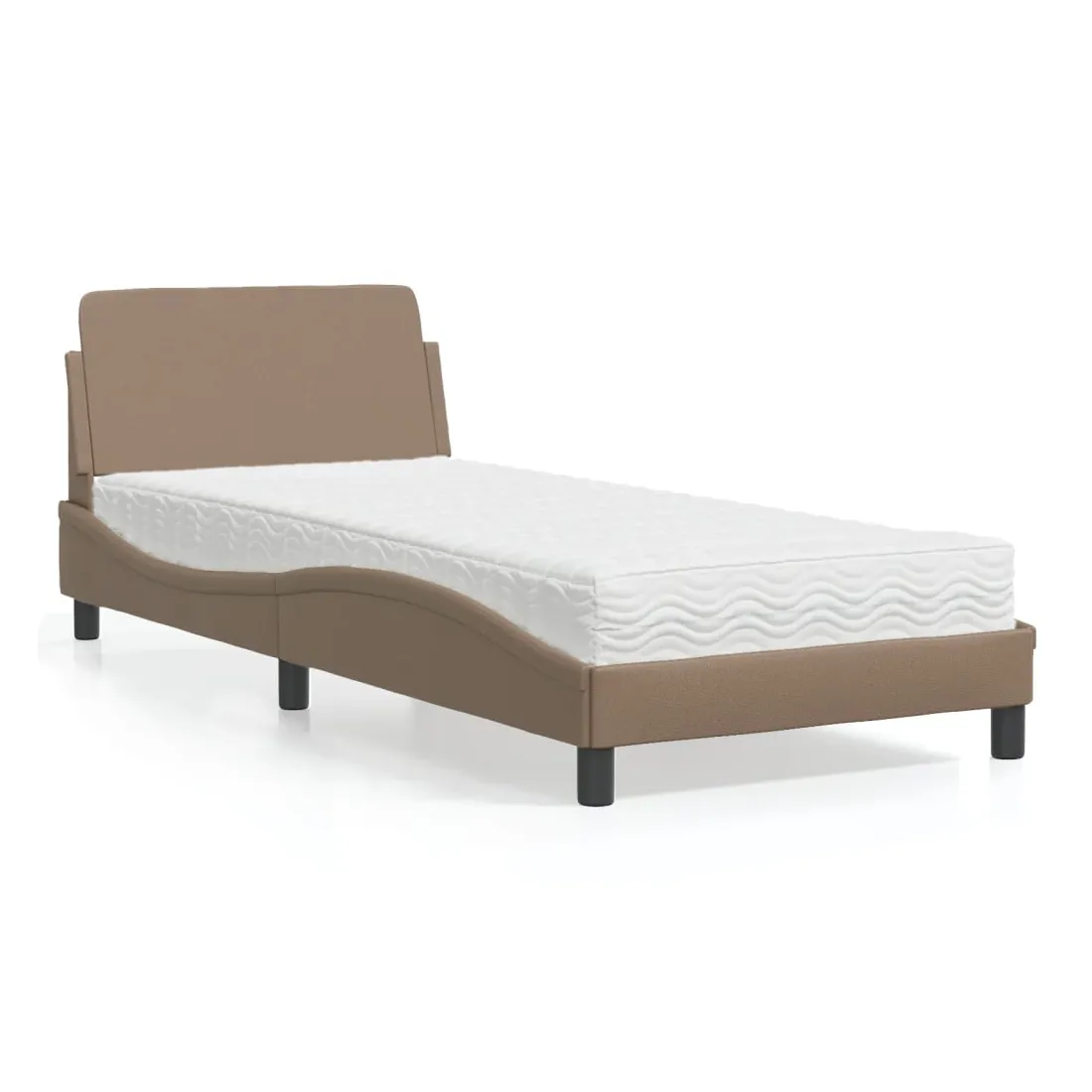 Obtenez une meilleure nuit de sommeil reposante grâce à ce lit avec matelas ! Il est un supplément accueillant à toute chambre à coucher. Similicuir durable : le similicuir de qualité supérieure est un matériau très durable. Il est résistant aux taches, ce qui le rend facile à nettoyer avec un chiffon humide. La surface lisse donne également un aspect luxueux et la beauté du cuir véritable.Lattes de contreplaqué : les lattes de contreplaqué assurent une bonne répartition du poids, garantissant que le matelas reste en place à chaque torsion de votre corps pendant le sommeil.Excellent soutien : la tête de lit vous offre un excellent soutien du dos lorsque vous êtes assis dans votre lit pour lire ou regarder la télévision.Matelas en mousse : ce matelas de lit en tissu à 3 couches est rempli de mousse PU 22D pour un confort optimal. Il contribue à soulager la fatigue et à favoriser la circulation sanguine, vous offrant ainsi une relaxation complète et une bonne qualité de sommeil. En outre, le matelas est disponible en dureté H2 et H3, de sorte que vous pouvez simplement tourner le matelas pour choisir la dureté qui vous convient le mieux.Design latéral ondulé : l’aspect ondulé du cadre de lit est élégant et sophistiqué, ajoutant une touche moderne et élégante à votre décor, ce qui en fait le point central de votre chambre à coucher.