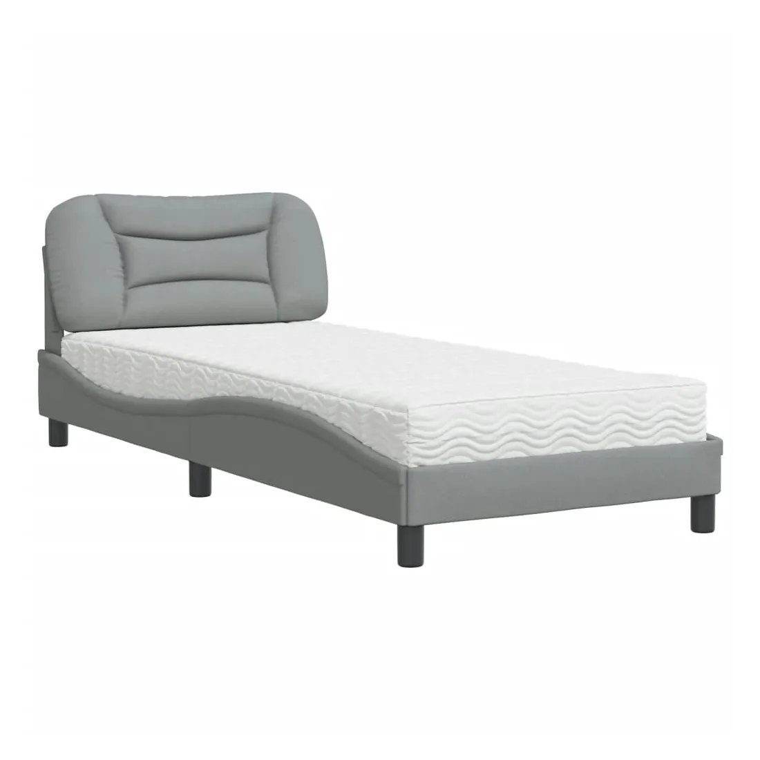 Obtenez une meilleure nuit de sommeil reposante grâce à ce lit avec matelas ! Il est un supplément accueillant à toute chambre à coucher. Tissu durable : le tissu présente un aspect simple et épuré, et il est respirant et durable.Lattes de contreplaqué : les lattes de contreplaqué assurent une bonne répartition du poids, garantissant que le matelas reste en place à chaque torsion de votre corps pendant le sommeil.Excellent soutien : la tête de lit vous offre un excellent soutien du dos lorsque vous êtes assis dans votre lit pour lire ou regarder la télévision.Matelas en mousse : ce matelas de lit en tissu à 3 couches est rempli de mousse PU 22D pour un confort optimal. Il contribue à soulager la fatigue et à favoriser la circulation sanguine, vous offrant ainsi une relaxation complète et une bonne qualité de sommeil. En outre, le matelas est disponible en dureté H2 et H3, de sorte que vous pouvez simplement tourner le matelas pour choisir la dureté qui vous convient le mieux.Design latéral ondulé : l’aspect ondulé du cadre de lit est élégant et sophistiqué, ajoutant une touche moderne et élégante à votre décor, ce qui en fait le point central de votre chambre à coucher.