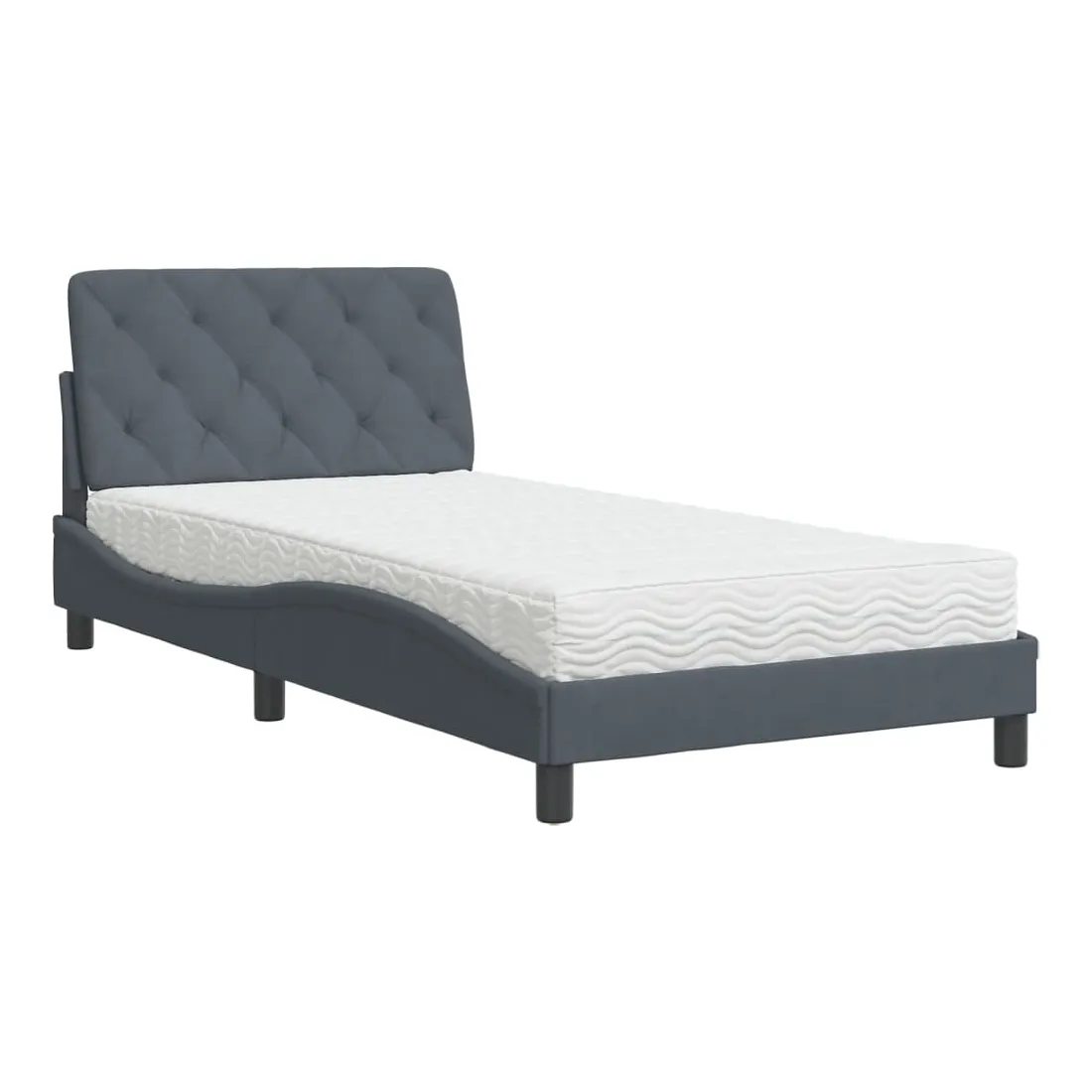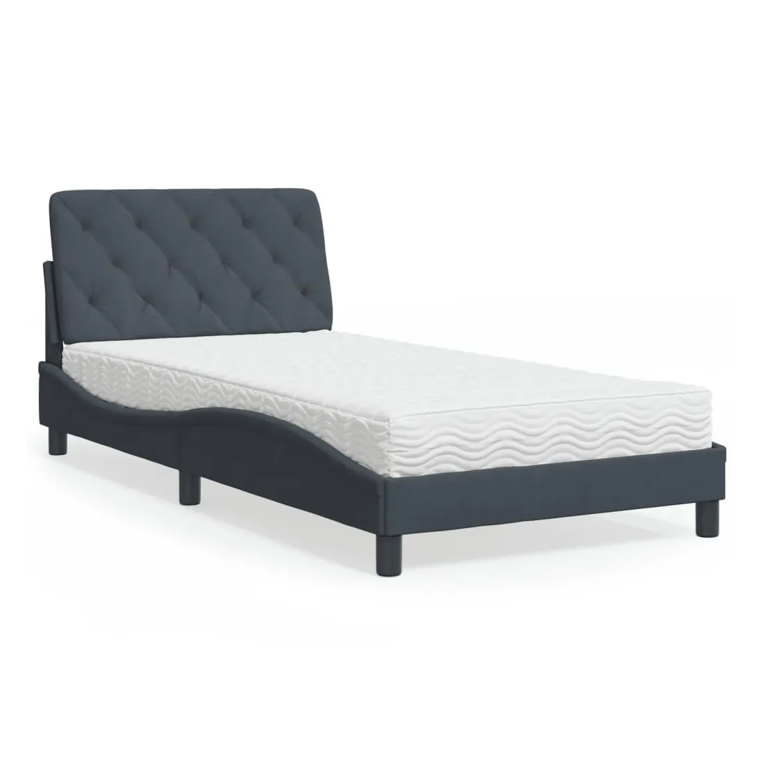 Obtenez une meilleure nuit de sommeil reposante grâce à ce lit avec matelas ! Il est un supplément accueillant à toute chambre à coucher. Velours doux : le velours est un tissu doux et confortable, agréable au toucher.Lattes de contreplaqué : les lattes de contreplaqué assurent une bonne répartition du poids, garantissant que le matelas reste en place à chaque torsion de votre corps pendant le sommeil.Excellent soutien : la tête de lit vous offre un excellent soutien du dos lorsque vous êtes assis dans votre lit pour lire ou regarder la télévision.Matelas en mousse : ce matelas de lit en tissu à 3 couches est rempli de mousse PU 22D pour un confort optimal. Il contribue à soulager la fatigue et à favoriser la circulation sanguine, vous offrant ainsi une relaxation complète et une bonne qualité de sommeil. En outre, le matelas est disponible en dureté H2 et H3, de sorte que vous pouvez simplement tourner le matelas pour choisir la dureté qui vous convient le mieux.Design latéral ondulé : l’aspect ondulé du cadre de lit est élégant et sophistiqué, ajoutant une touche moderne et élégante à votre décor, ce qui en fait le point central de votre chambre à coucher.