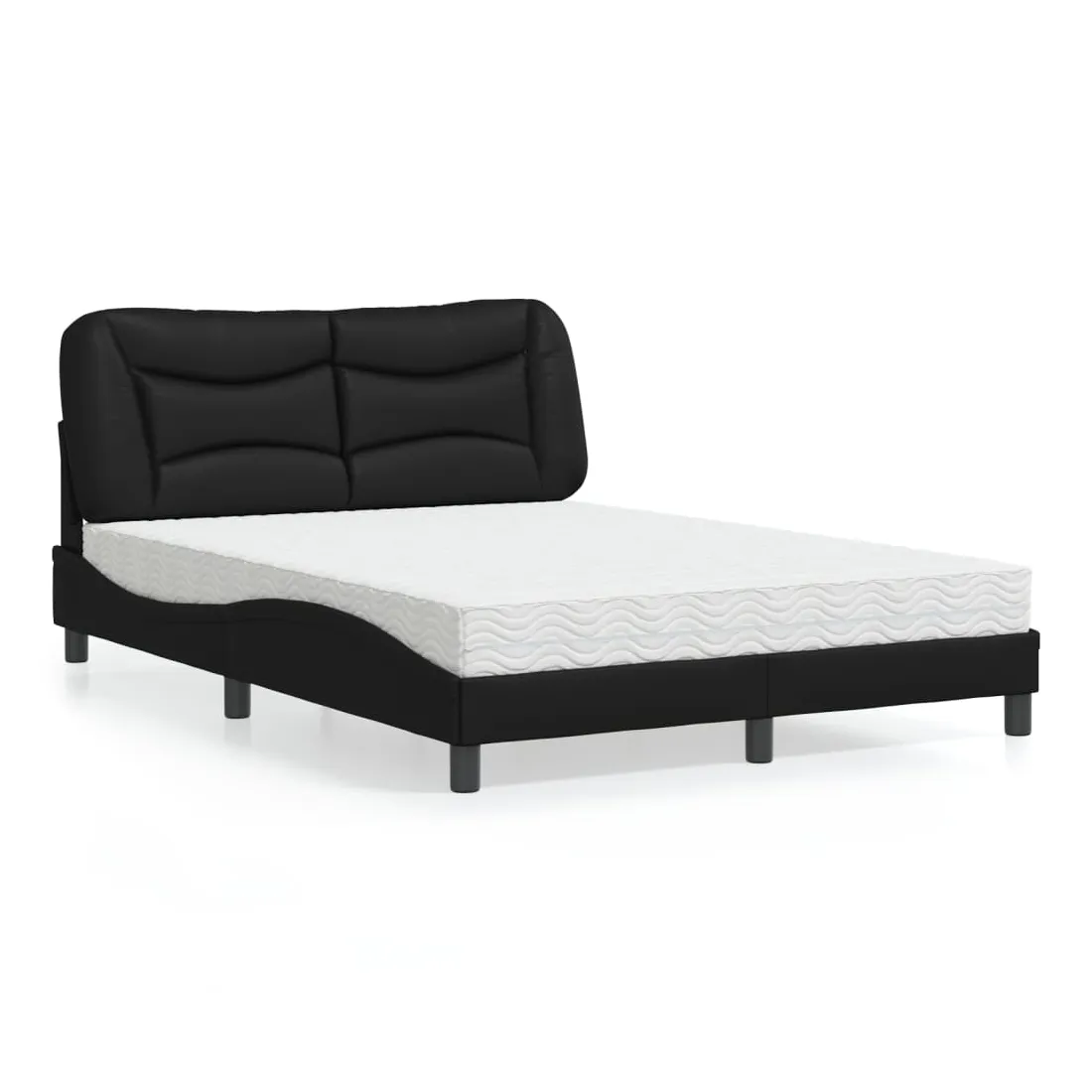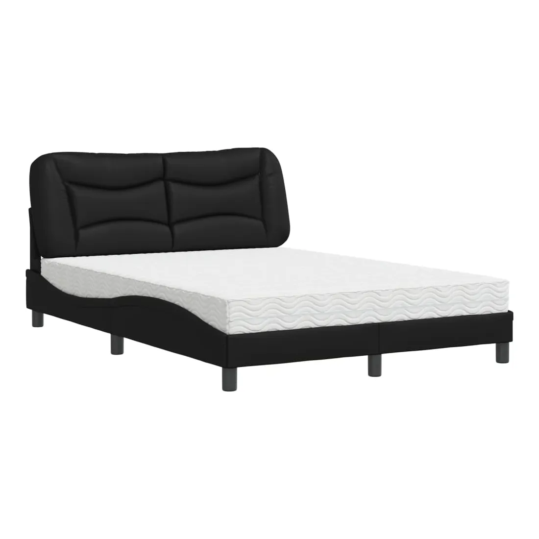 Obtenez une meilleure nuit de sommeil reposante grâce à ce lit avec matelas ! Il est un supplément accueillant à toute chambre à coucher. Similicuir durable : le similicuir de qualité supérieure est un matériau très durable. Il est résistant aux taches, ce qui le rend facile à nettoyer avec un chiffon humide. La surface lisse donne également un aspect luxueux et la beauté du cuir véritable.Lattes de contreplaqué : les lattes de contreplaqué assurent une bonne répartition du poids, garantissant que le matelas reste en place à chaque torsion de votre corps pendant le sommeil.Excellent soutien : la tête de lit vous offre un excellent soutien du dos lorsque vous êtes assis dans votre lit pour lire ou regarder la télévision.Matelas en mousse : ce matelas de lit en tissu à 3 couches est rempli de mousse PU 22D pour un confort optimal. Il contribue à soulager la fatigue et à favoriser la circulation sanguine, vous offrant ainsi une relaxation complète et une bonne qualité de sommeil. En outre, le matelas est disponible en dureté H2 et H3, de sorte que vous pouvez simplement tourner le matelas pour choisir la dureté qui vous convient le mieux.Design latéral ondulé : l’aspect ondulé du cadre de lit est élégant et sophistiqué, ajoutant une touche moderne et élégante à votre décor, ce qui en fait le point central de votre chambre à coucher.