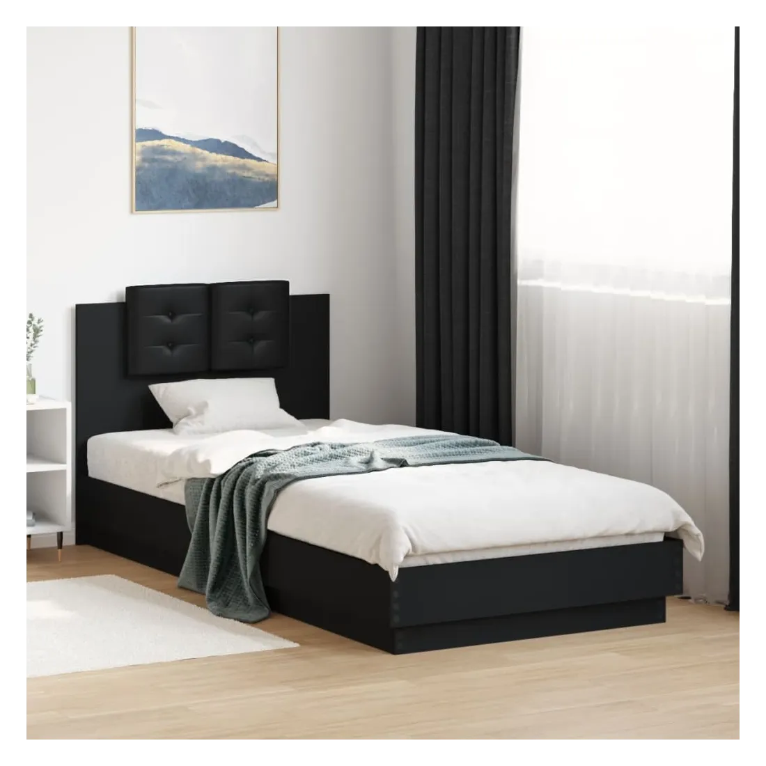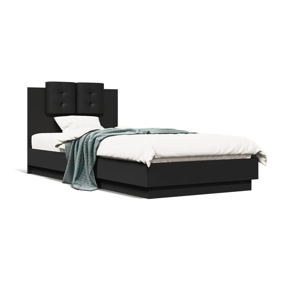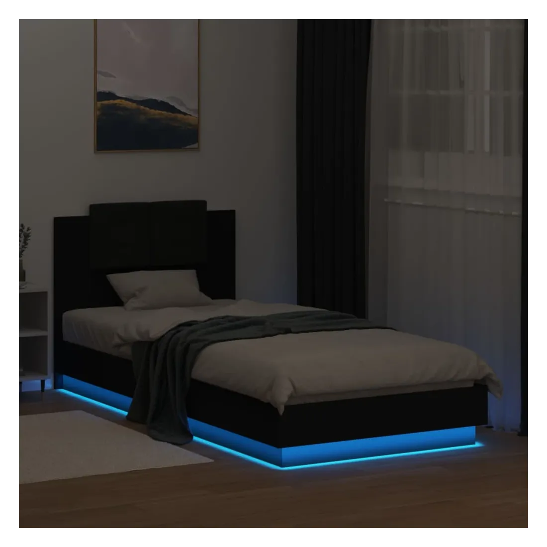 Obtenez une meilleure nuit de sommeil reposante grâce à ce cadre de lit avec tête de lit et lumières LED ! Il est un supplément accueillant à toute chambre à coucher. Matériau durable : le bois d'ingénierie est d'une qualité exceptionnelle avec une surface lisse et présente également résistance, stabilité et résistance à l'humidité.Lumières LED RVB : le cadre de lit est équipé de lumières LED RVB vibrantes. Avec divers menus personnalisables, vous pouvez changer sans effort la couleur des lumières et même les régler automatiquement. Ces lumières LED renforcent non seulement l'aspect contemporain du sommier, mais ajoutent également à son attrait tendance.Excellent soutien : la tête de lit vous offre un excellent soutien du dos lorsque vous êtes assis dans votre lit pour lire ou regarder la télévision.Lattes robustes : les lattes de contreplaqué assurent une bonne répartition du poids, garantissant que le matelas reste en place à chaque torsion de votre corps pendant le sommeil. Bon à savoir :Un matelas n'est pas inclus avec ce lit. Nous offrons une sélection variée de matelas. Vous pouvez consulter notre boutique pour trouver un matelas assorti.Ce produit est doté d'un connecteur USB qui nécessite une source d'alimentation USB de 5V certifiée (non incluse).