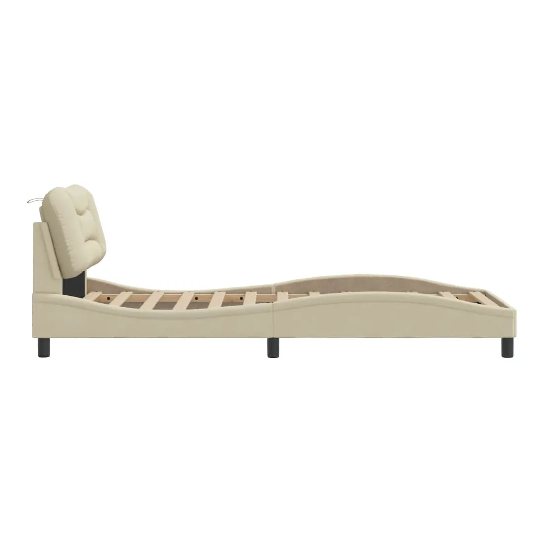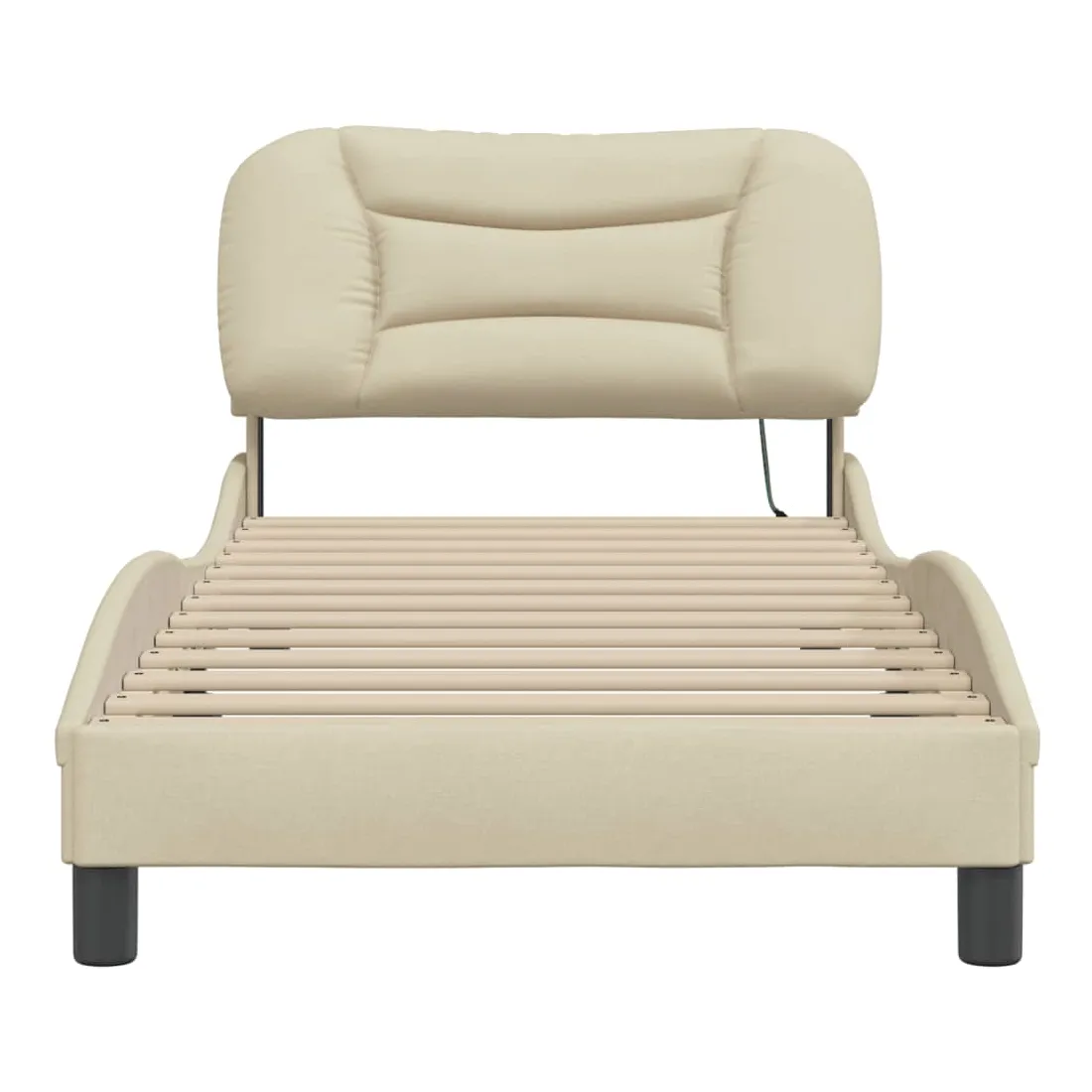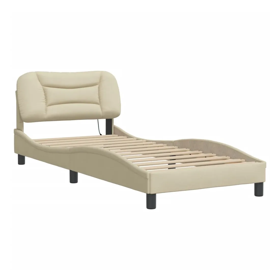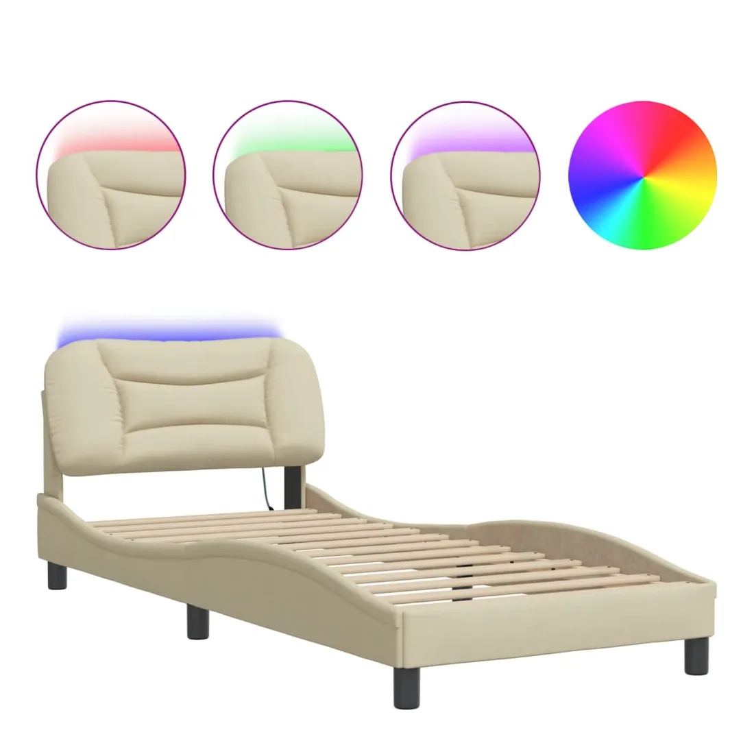 Obtenez une meilleure nuit de sommeil reposante grâce à ce cadre de lit avec lumières LED ! Il est un supplément accueillant à toute chambre à coucher. Tissu durable : le tissu présente un aspect simple et épuré, et il est respirant et durable.Lattes de contreplaqué : les lattes de contreplaqué assurent une bonne répartition du poids, garantissant que le matelas reste en place à chaque torsion de votre corps pendant le sommeil.Excellent soutien : la tête de lit vous offre un excellent soutien du dos lorsque vous êtes assis dans votre lit pour lire ou regarder la télévision.Bande LED colorée : apportez de la gaieté dans l'obscurité avec des lumières LED colorées ! Les bandes auto-agrippantes situées à l'arrière du coussin de la tête de lit peuvent être utilisées pour fixer les lumières LED.Design latéral ondulé : l’aspect ondulé du cadre de lit est élégant et sophistiqué, ajoutant une touche moderne et élégante à votre décor, ce qui en fait le point central de votre chambre à coucher. Bon à savoir :Un matelas n'est pas inclus avec ce lit. Nous offrons une sélection variée de matelas. Vous pouvez consulter notre boutique pour trouver un matelas assorti.Ce produit est doté d'un connecteur USB qui nécessite une source d'alimentation USB de 5V certifiée (non incluse).