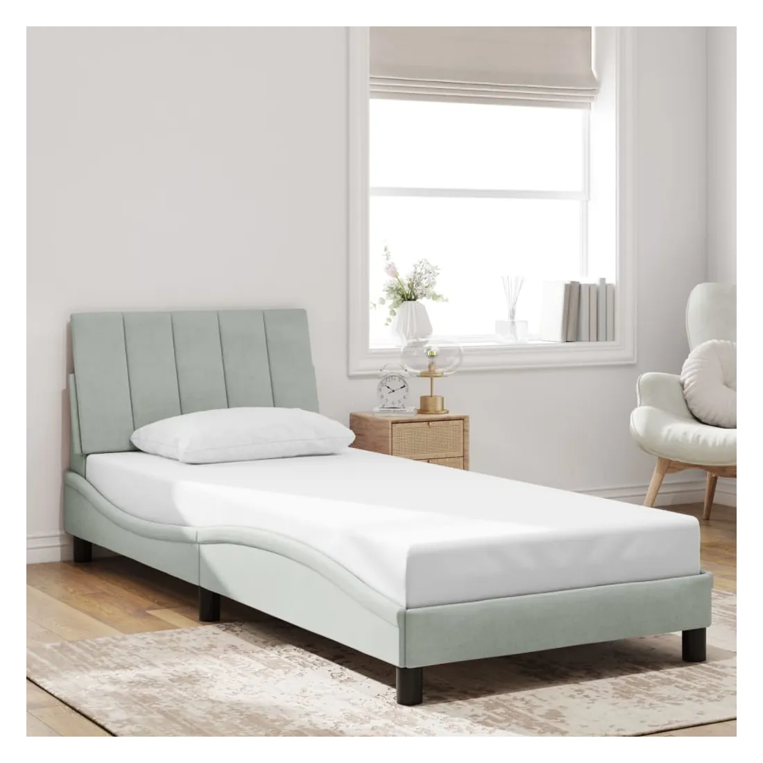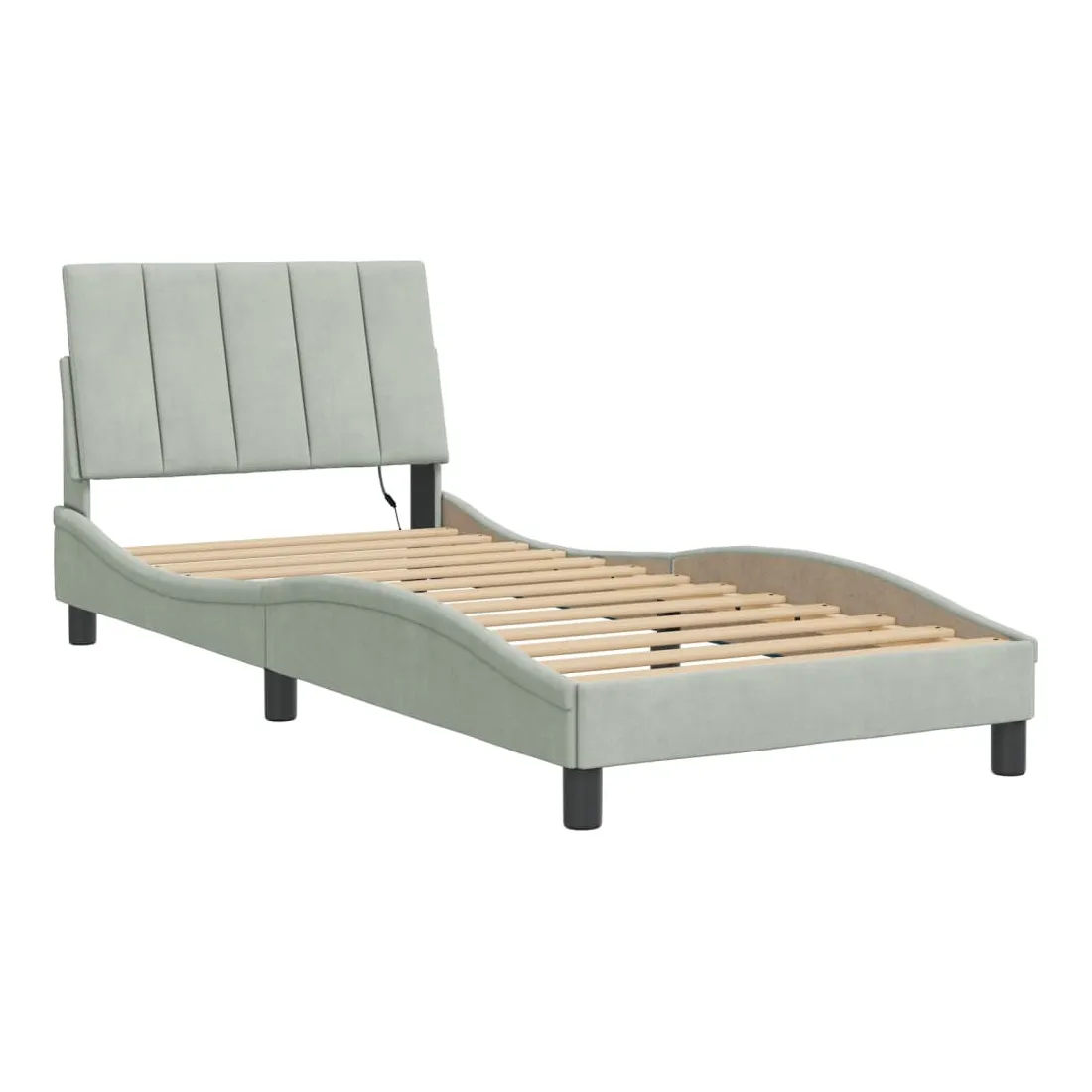 Cadre de lit avec LED sans matelas Hanko gris clair 80x200 cm velours