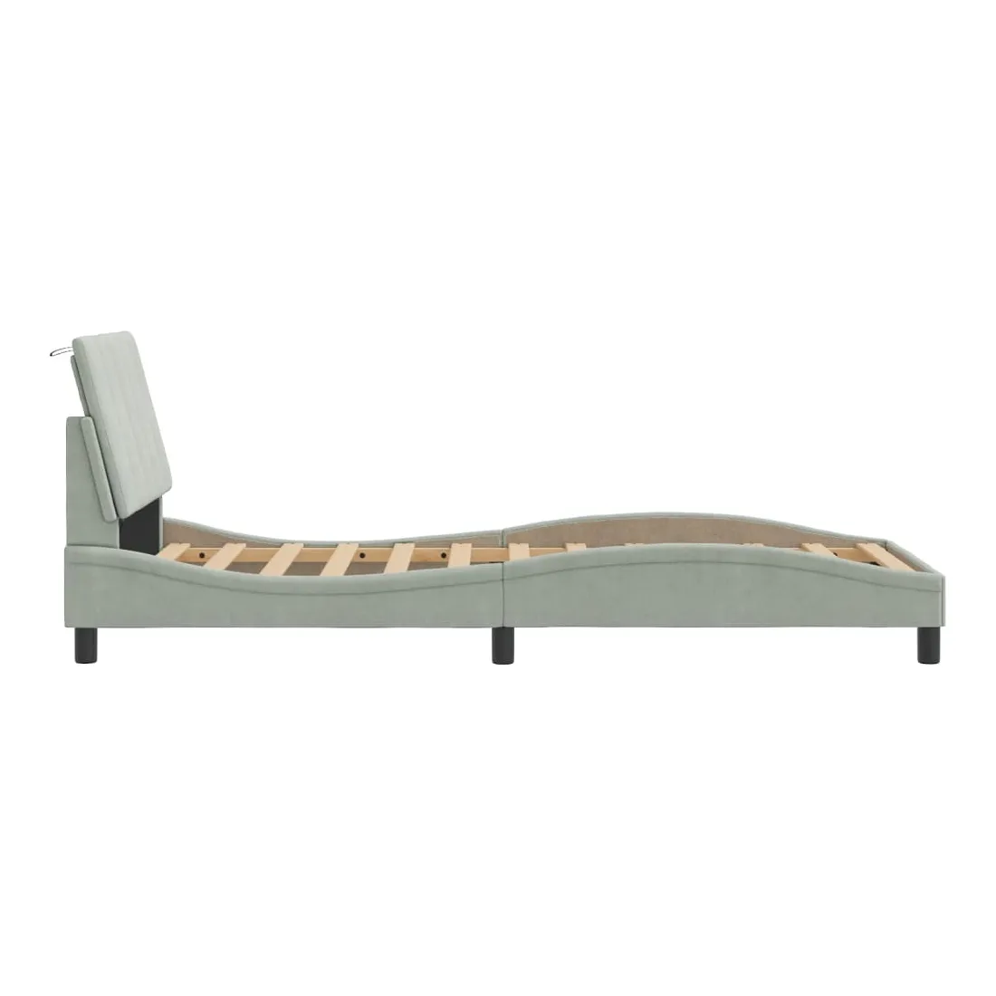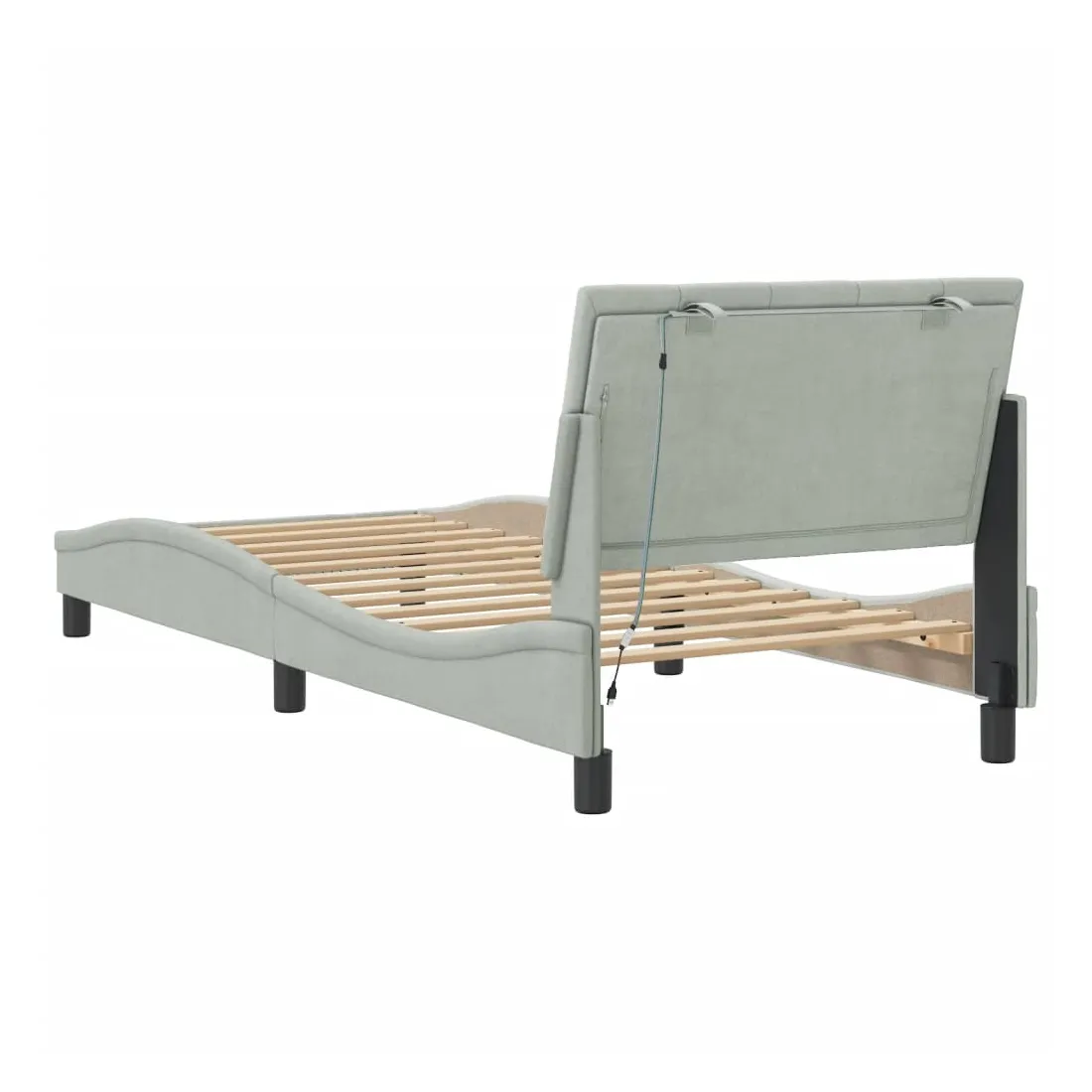 vidaXLObtenez une meilleure nuit de sommeil reposante grâce à ce cadre de lit avec lumières LED ! Il est un supplément accueillant à toute chambre à coucher. Velours doux : le velours est un tissu doux et confortable, agréable au toucher.Lattes de contreplaqué : les lattes de contreplaqué assurent une bonne répartition du poids, garantissant que le matelas reste en place à chaque torsion de votre corps pendant le sommeil.Excellent soutien : la tête de lit vous offre un excellent soutien du dos lorsque vous êtes assis dans votre lit pour lire ou regarder la télévision.Bande LED colorée : apportez de la gaieté dans l'obscurité avec des lumières LED colorées ! Les bandes auto-agrippantes situées à l'arrière du coussin de la tête de lit peuvent être utilisées pour fixer les lumières LED.Design latéral ondulé : l’aspect ondulé du cadre de lit est élégant et sophistiqué, ajoutant une touche moderne et élégante à votre décor, ce qui en fait le point central de votre chambre à coucher. Bon à savoir :Un matelas n'est pas inclus avec ce lit. Nous offrons une sélection variée de matelas. Vous pouvez consulter notre boutique pour trouver un matelas assorti.Ce produit est doté d'un connecteur USB qui nécessite une source d'alimentation USB de 5V certifiée (non incluse).