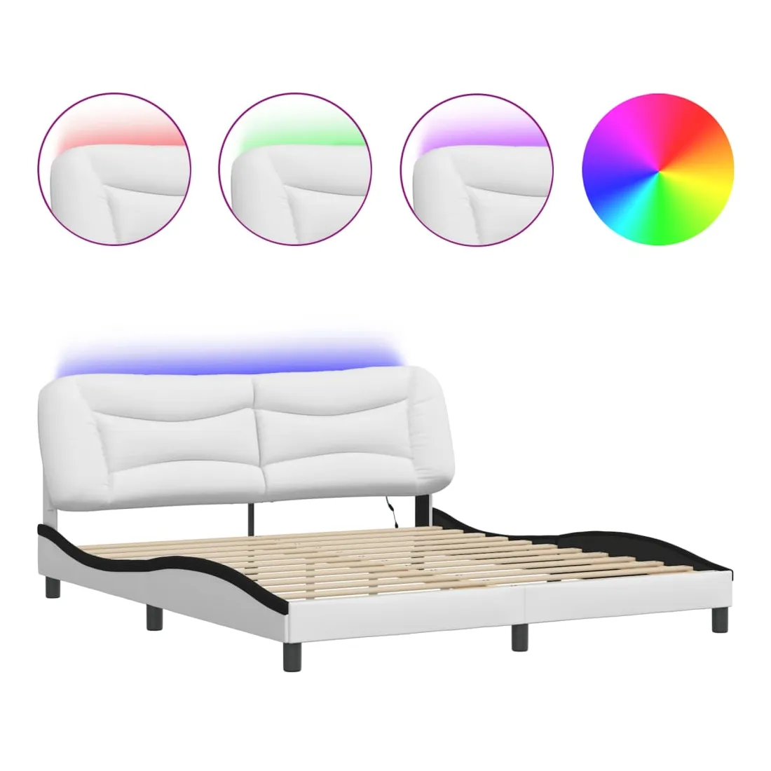 vidaXLObtenez une meilleure nuit de sommeil reposante grâce à ce cadre de lit avec lumières LED ! Il est un supplément accueillant à toute chambre à coucher. Similicuir durable : le similicuir de qualité supérieure est un matériau très durable. Il est résistant aux taches, ce qui le rend facile à nettoyer avec un chiffon humide. La surface lisse donne également un aspect luxueux et la beauté du cuir véritable.Lattes de contreplaqué : les lattes de contreplaqué assurent une bonne répartition du poids, garantissant que le matelas reste en place à chaque torsion de votre corps pendant le sommeil.Excellent soutien : la tête de lit vous offre un excellent soutien du dos lorsque vous êtes assis dans votre lit pour lire ou regarder la télévision.Bande LED colorée : apportez de la gaieté dans l'obscurité avec des lumières LED colorées ! Les bandes auto-agrippantes situées à l'arrière du coussin de la tête de lit peuvent être utilisées pour fixer les lumières LED.Design latéral ondulé : l’aspect ondulé du cadre de lit est élégant et sophistiqué, ajoutant une touche moderne et élégante à votre décor, ce qui en fait le point central de votre chambre à coucher. Bon à savoir :Un matelas n'est pas inclus avec ce lit. Nous offrons une sélection variée de matelas. Vous pouvez consulter notre boutique pour trouver un matelas assorti.Ce produit est doté d'un connecteur USB qui nécessite une source d'alimentation USB de 5V certifiée (non incluse).