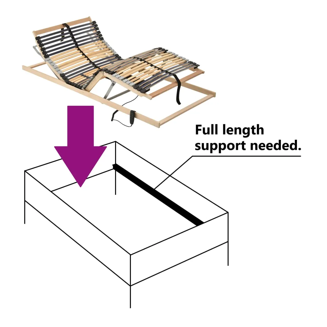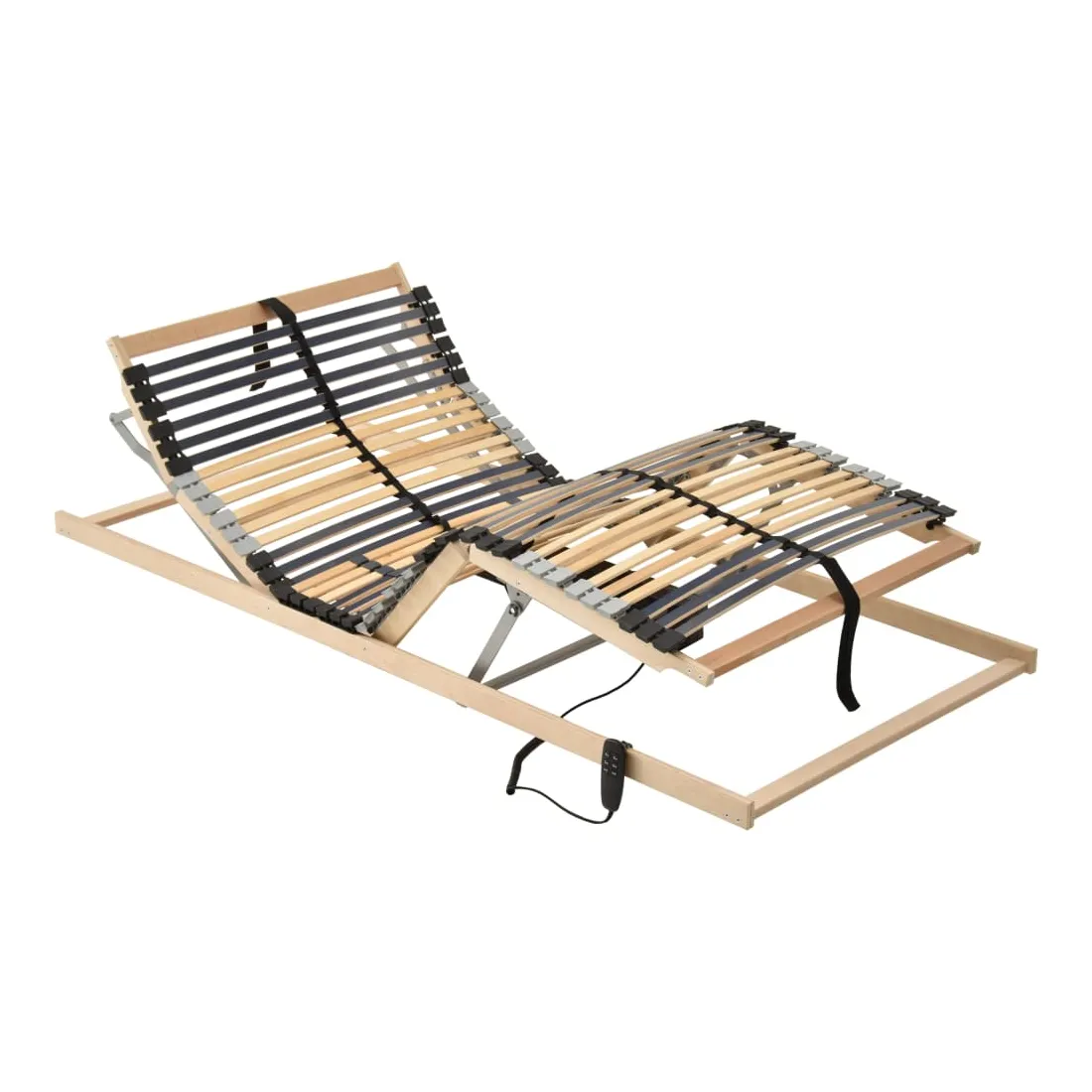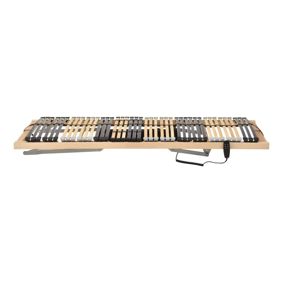 Ce sommier à lattes électrique confortable vous fera aimer encore davantage votre lit ! Avec un cadre en hêtre massif et des lattes en bouleau, le sommier est robuste et durable. Les 7 zones de confort offrent un soutien optimal à votre corps. Les deux extrémités des lattes sont maintenues en place par des capuchons en caoutchouc SBS pour une meilleure stabilité de l'ensemble de la structure. Grâce aux 6 lattes doubles réglables dans la zone centrale, la fermeté de la base peut être ajustée en fonction de vos besoins. Avec une commande manuelle, les zones de la tête et des pieds sont réglables pour votre confort. Veuillez noter que la livraison comprend uniquement une base de lit à lattes ; un matelas et un cadre de lit ne sont pas inclus. Bon à savoir : l'assemblage est requis en raison des restrictions d'expédition limitant la taille du paquet à un maximum de 120 cm.