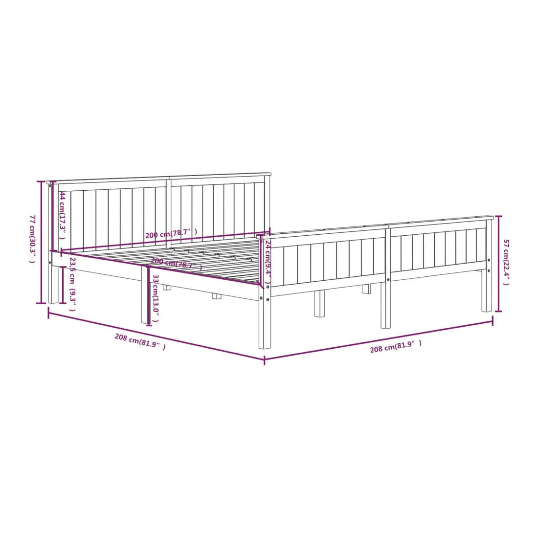 - Dimensions du matelas correspondant : 200 x 200 cm (l x L) (matelas non inclus)