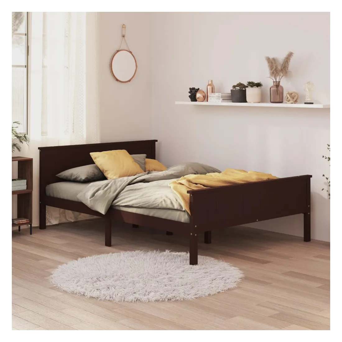 Avec un design simple mais intemporel, ce cadre de lit sera un supplément vraiment pratique et décoratif à votre chambre à coucher. Matériau de première qualité : le bois de pin massif est un matériau naturel magnifique. Le bois de pin a un grain droit et les nœuds donnent au matériau son aspect caractéristique et rustique.Lattes robustes : les lattes de contreplaqué assurent une bonne répartition du poids, garantissant que le matelas reste en place à chaque torsion de votre corps pendant le sommeil. Lit pratique : profitez d'une bonne nuit de sommeil dans ce lit double ! Remarque :La livraison comprend uniquement un cadre de lit. Le matelas n'est pas inclus. Vous pouvez consulter notre boutique pour trouver les matelas assortis.