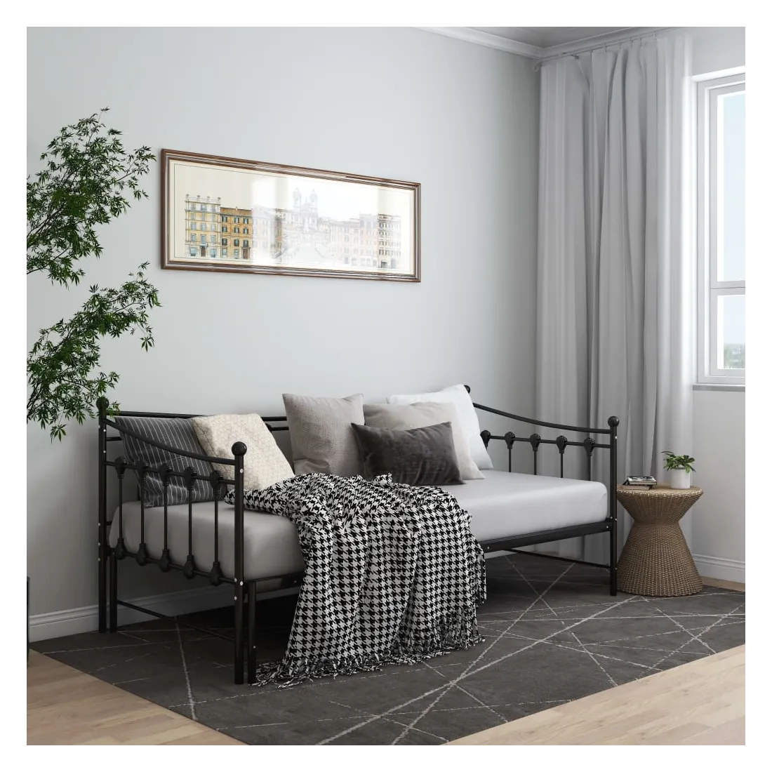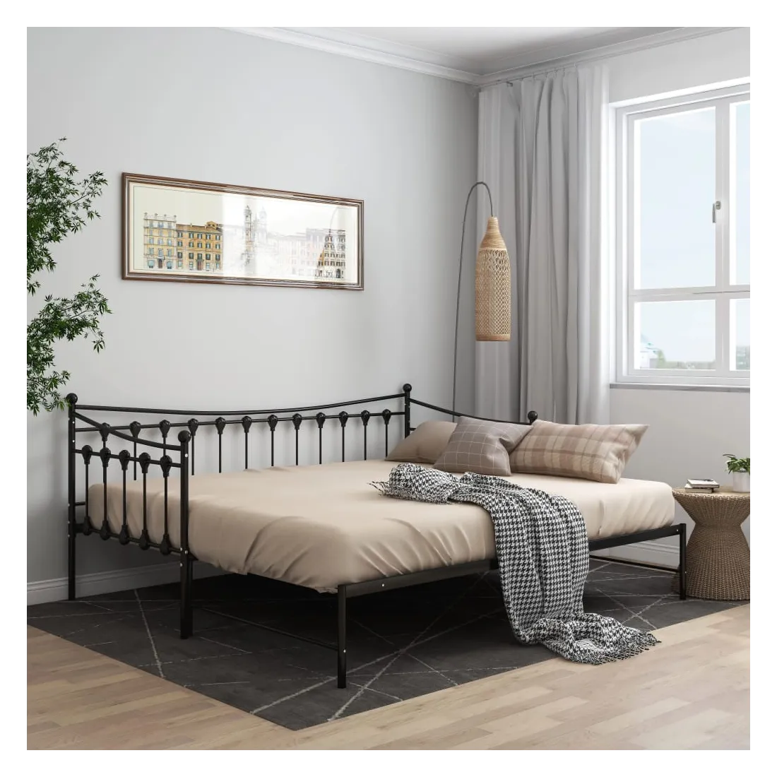 Ce canapé-lit polyvalent sera parfait pour accueillir des invités inattendus pour la nuit, tout en offrant un espace de siège confortable pendant la journée. Vous pouvez facilement convertir ce meuble en un canapé pendant la journée et en un lit confortable la nuit. Le cadre du lit de jour maximise l’espace disponible au sol tout en offrant un espace de couchage pour deux personnes, ce qui en fait un choix idéal pour les personnes ayant un espace de vie limité. De plus, le lit de nuit est équipé d’une balustrade latérale qui empêche l’utilisateur de rouler tout en dormant. Le cadre de lit entier a une construction métallique robuste, ce qui le rend très durable, et adapté pour une utilisation quotidienne. Veuillez noter que la livraison comprend le cadre de lit uniquement. Les matelas ne sont pas inclus. Vous pouvez consulter notre boutique pour les matelas assortis.
