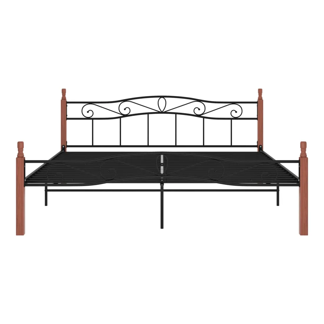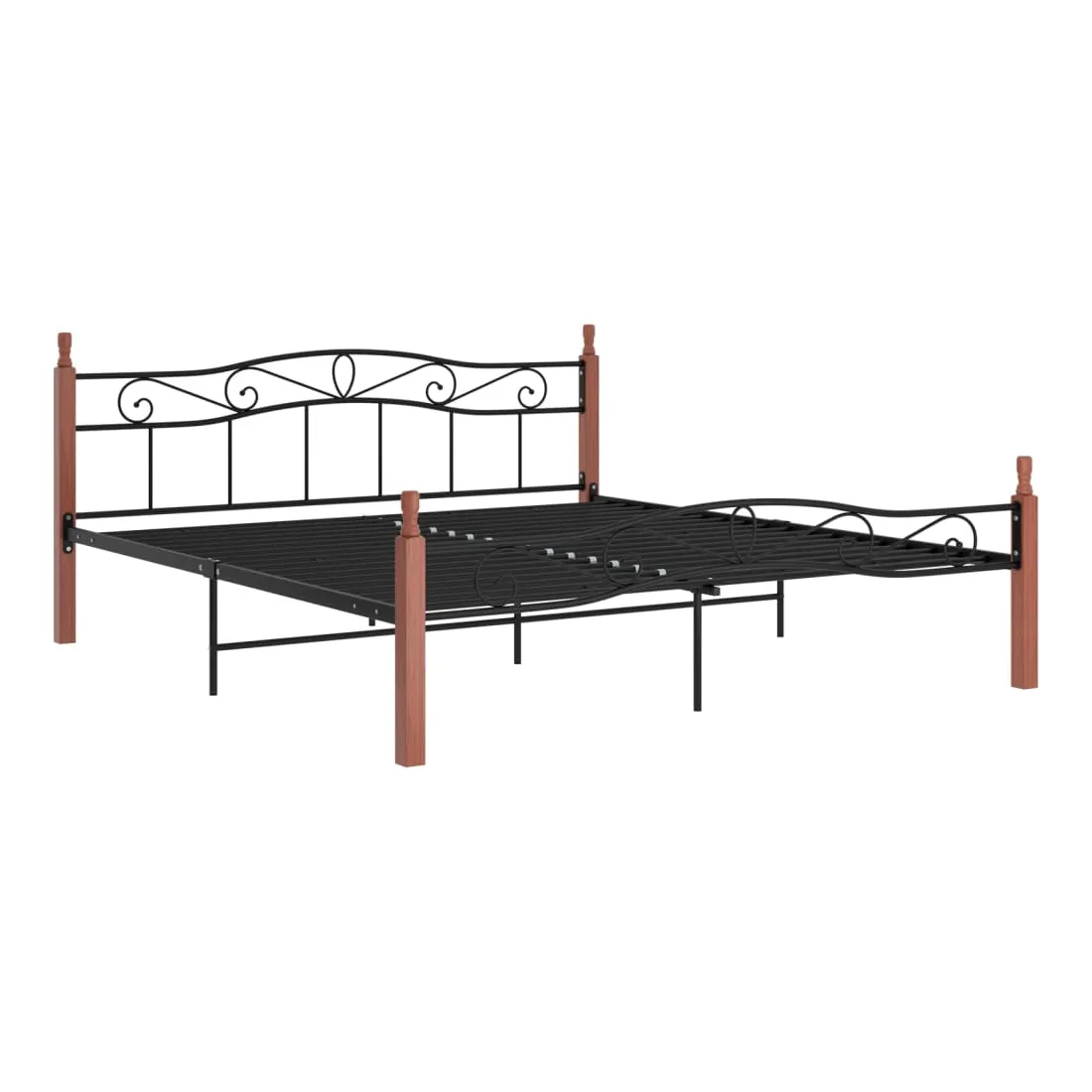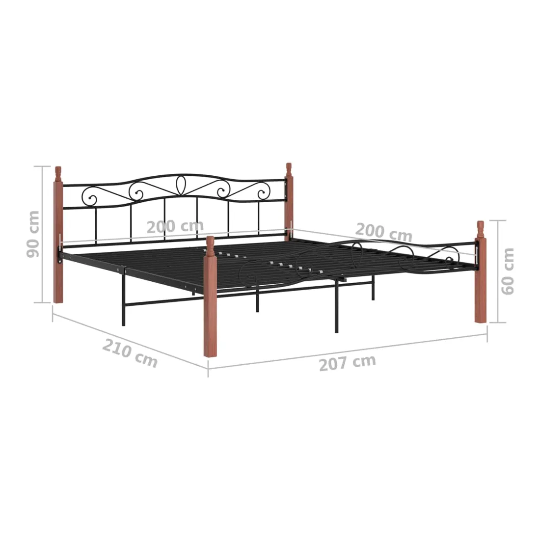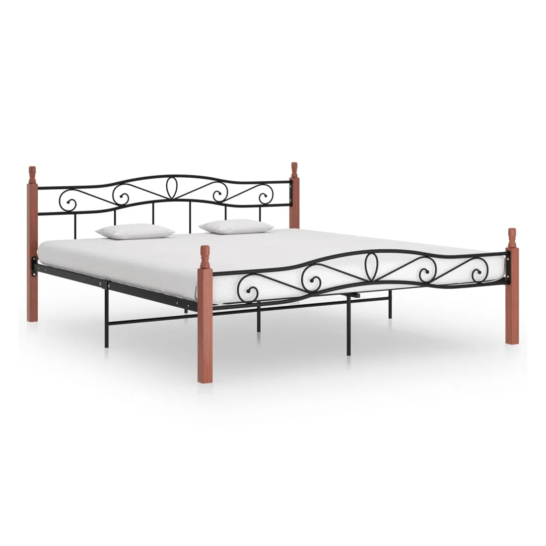 Cadre de lit sans matelas noir métal bois chêne 200x200 cm