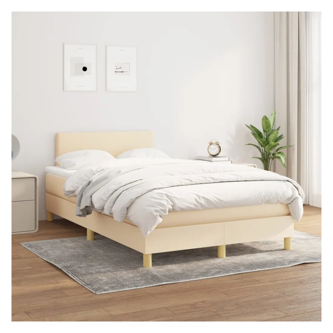 Sommier à lattes de lit avec matelas crème 120x190 cm tissu