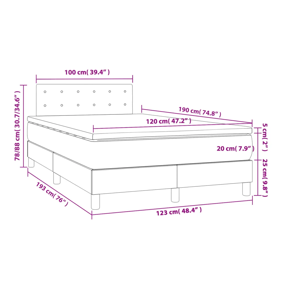 - Dimensions : 120 x 190 x 20 cm (l x L x H)