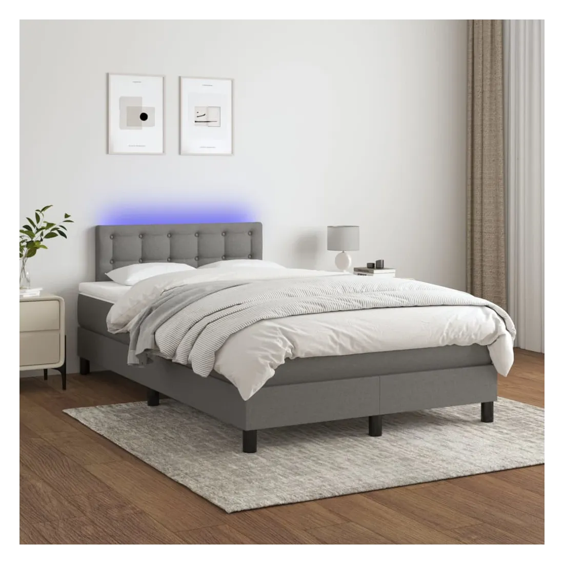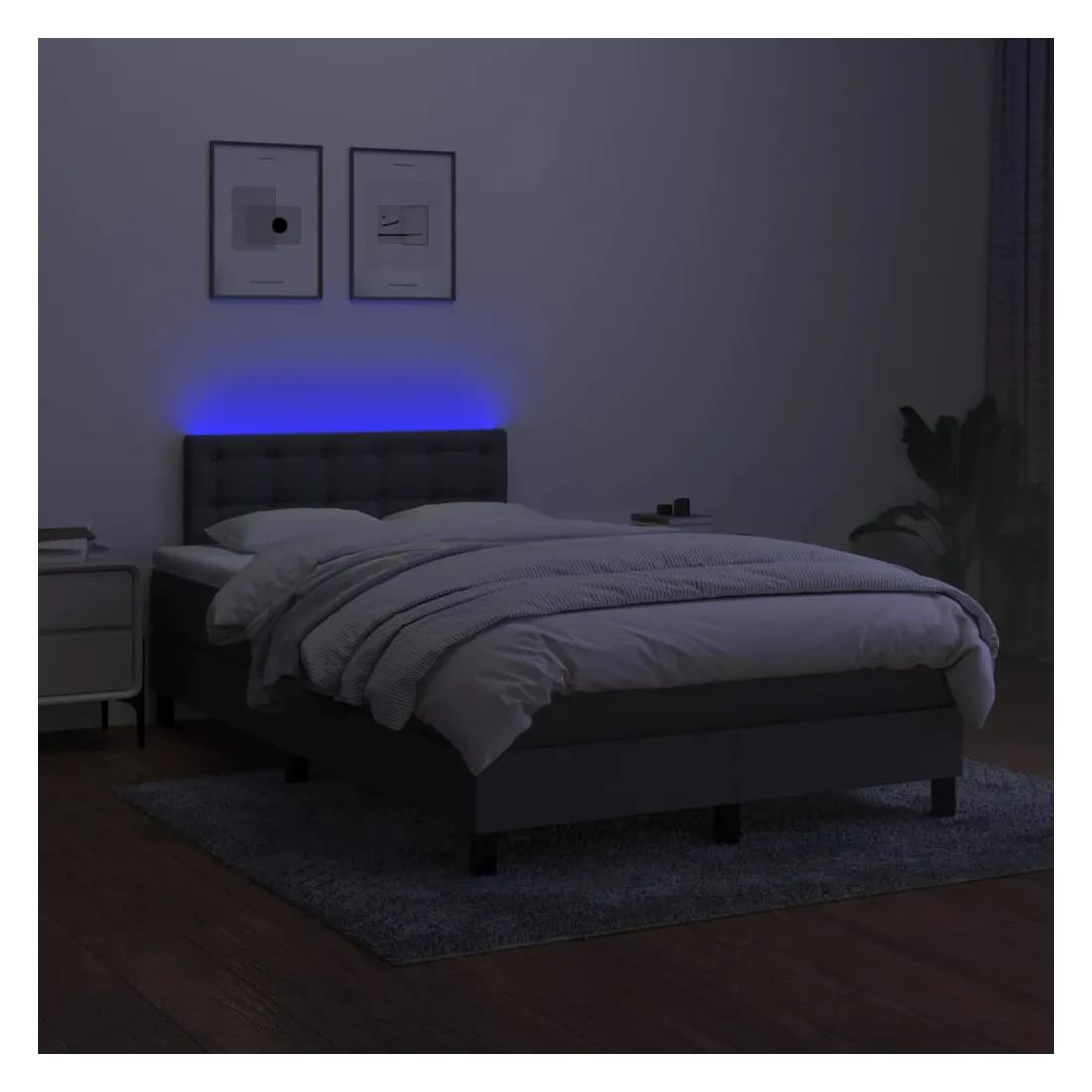 Utilisez ce sommier tapissier avec matelas et LED pour profiter d'un sommeil réparateur ! C'est le point central de votre chambre à coucher. Tissu durable : le tissu présente un aspect simple et épuré, et il est respirant et durable.Tête de lit pratique : la tête de lit est réglable en hauteur selon vos préférences. La tête de lit vous offre un excellent soutien du dos lorsque vous êtes assis dans votre lit pour lire ou regarder la télévision.Bande LED colorée : apportez de l'éclairage dans l'obscurité avec des lumières LED colorées !Matelas à ressorts ensachés : le ressort ensaché individuel intégré est connu pour sa très haute qualité tout en assurant un haut niveau de durabilité et d'adaptabilité. Il peut absorber efficacement le bruit et les chocs causés par les sauts et les rotations.Protège-matelas doux pour la peau : le protège-matelas est recouvert d'un tissu résistant et doux pour la peau, ce qui le rend souple et confortable. Bon à savoir :Pour des raisons d'hygiène, le matelas ne peut pas être retourné si l'emballage est retiré ou ouvert.Seule la partie avec un symbole de ciseaux peut être coupée et seule la partie avec l'USB continuera à fonctionner comme avant.Ce produit est doté d'un connecteur USB qui nécessite une source d'alimentation USB de 5V certifiée (non incluse).