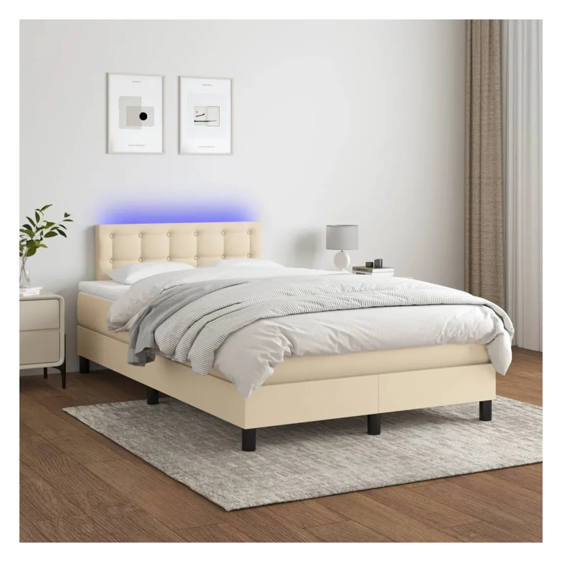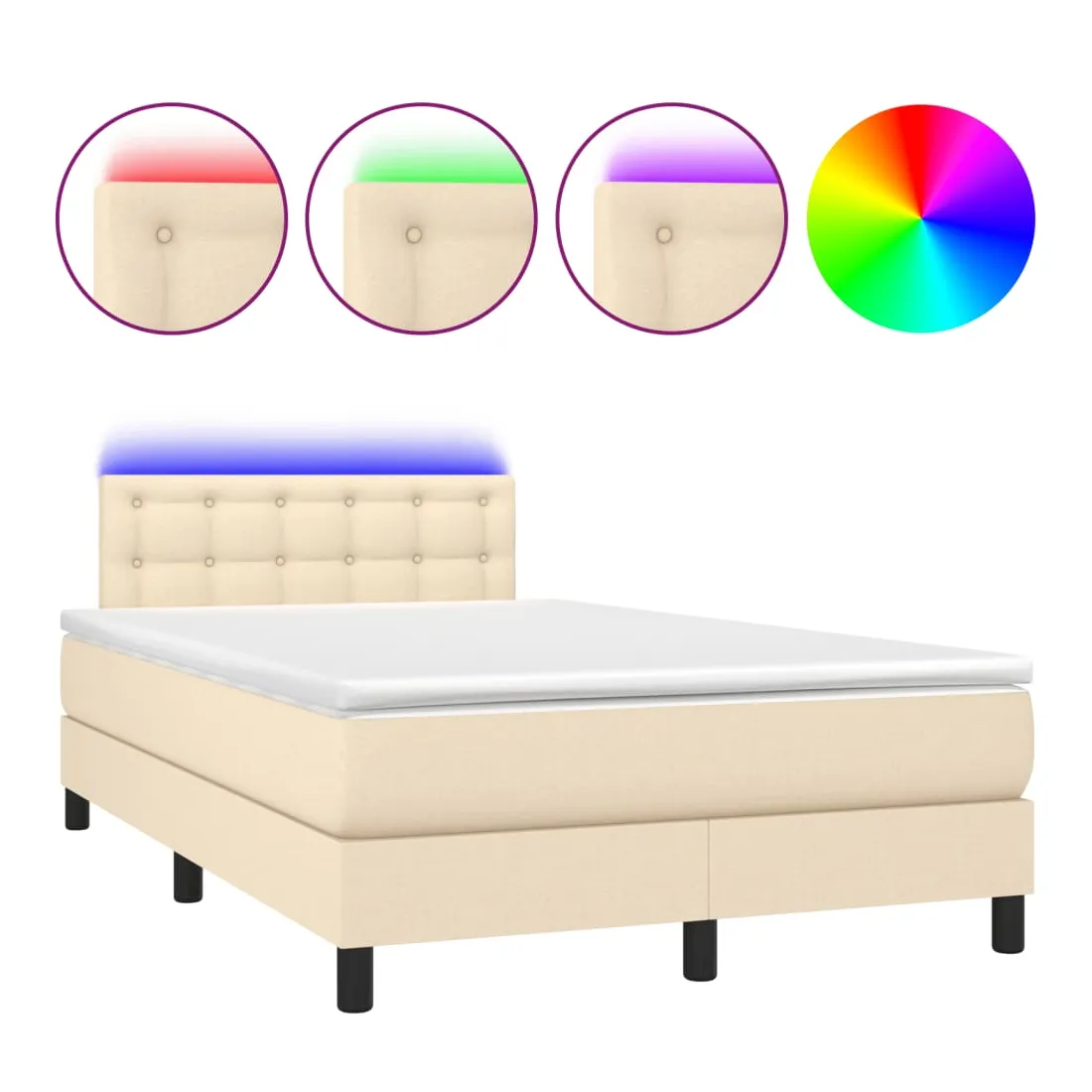 Utilisez ce sommier tapissier avec matelas et LED pour profiter d'un sommeil réparateur ! C'est le point central de votre chambre à coucher. Tissu durable : le tissu présente un aspect simple et épuré, et il est respirant et durable.Tête de lit pratique : la tête de lit est réglable en hauteur selon vos préférences. La tête de lit vous offre un excellent soutien du dos lorsque vous êtes assis dans votre lit pour lire ou regarder la télévision.Bande LED colorée : apportez de l'éclairage dans l'obscurité avec des lumières LED colorées !Matelas à ressorts ensachés : le ressort ensaché individuel intégré est connu pour sa très haute qualité tout en assurant un haut niveau de durabilité et d'adaptabilité. Il peut absorber efficacement le bruit et les chocs causés par les sauts et les rotations.Protège-matelas doux pour la peau : le protège-matelas est recouvert d'un tissu résistant et doux pour la peau, ce qui le rend souple et confortable. Bon à savoir :Pour des raisons d'hygiène, le matelas ne peut pas être retourné si l'emballage est retiré ou ouvert.Seule la partie avec un symbole de ciseaux peut être coupée et seule la partie avec l'USB continuera à fonctionner comme avant.Ce produit est doté d'un connecteur USB qui nécessite une source d'alimentation USB de 5V certifiée (non incluse).
