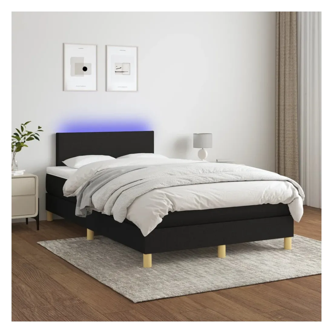 Utilisez ce sommier tapissier avec matelas et LED pour profiter d'un sommeil réparateur ! C'est le point central de votre chambre à coucher. Tissu durable : le tissu présente un aspect simple et épuré, et il est respirant et durable.Tête de lit pratique : la tête de lit est réglable en hauteur selon vos préférences. La tête de lit vous offre un excellent soutien du dos lorsque vous êtes assis dans votre lit pour lire ou regarder la télévision.Bande LED colorée : apportez de l'éclairage dans l'obscurité avec des lumières LED colorées !Matelas à ressorts ensachés : le ressort ensaché individuel intégré est connu pour sa très haute qualité tout en assurant un haut niveau de durabilité et d'adaptabilité. Il peut absorber efficacement le bruit et les chocs causés par les sauts et les rotations.Protège-matelas doux pour la peau : le protège-matelas est recouvert d'un tissu résistant et doux pour la peau, ce qui le rend souple et confortable. Bon à savoir :Pour des raisons d'hygiène, le matelas ne peut pas être retourné si l'emballage est retiré ou ouvert.Seule la partie avec un symbole de ciseaux peut être coupée et seule la partie avec l'USB continuera à fonctionner comme avant.Ce produit est doté d'un connecteur USB qui nécessite une source d'alimentation USB de 5V certifiée (non incluse).