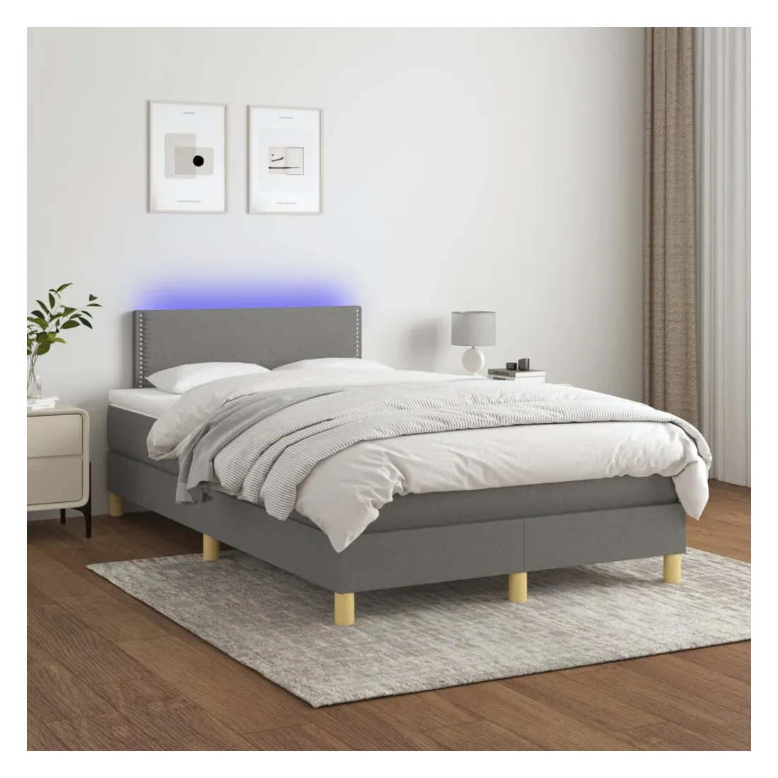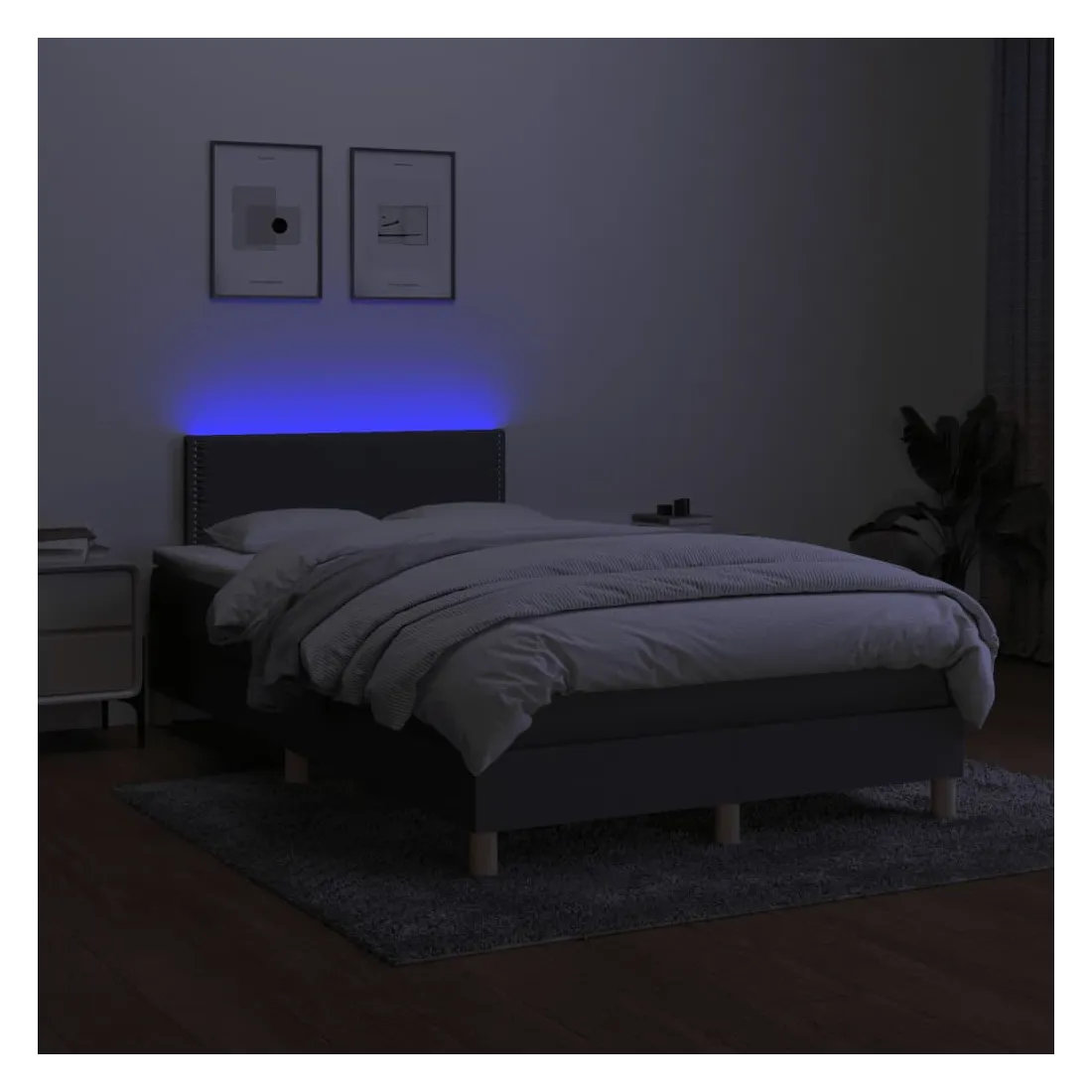 Utilisez ce sommier tapissier avec matelas et LED pour profiter d'un sommeil réparateur ! C'est le point central de votre chambre à coucher. Tissu durable : le tissu présente un aspect simple et épuré, et il est respirant et durable.Tête de lit pratique : la tête de lit est réglable en hauteur selon vos préférences. La tête de lit vous offre un excellent soutien du dos lorsque vous êtes assis dans votre lit pour lire ou regarder la télévision.Bande LED colorée : apportez de l'éclairage dans l'obscurité avec des lumières LED colorées !Matelas à ressorts ensachés : le ressort ensaché individuel intégré est connu pour sa très haute qualité tout en assurant un haut niveau de durabilité et d'adaptabilité. Il peut absorber efficacement le bruit et les chocs causés par les sauts et les rotations.Protège-matelas doux pour la peau : le protège-matelas est recouvert d'un tissu résistant et doux pour la peau, ce qui le rend souple et confortable. Bon à savoir :Pour des raisons d'hygiène, le matelas ne peut pas être retourné si l'emballage est retiré ou ouvert.Seule la partie avec un symbole de ciseaux peut être coupée et seule la partie avec l'USB continuera à fonctionner comme avant.Ce produit est doté d'un connecteur USB qui nécessite une source d'alimentation USB de 5V certifiée (non incluse).