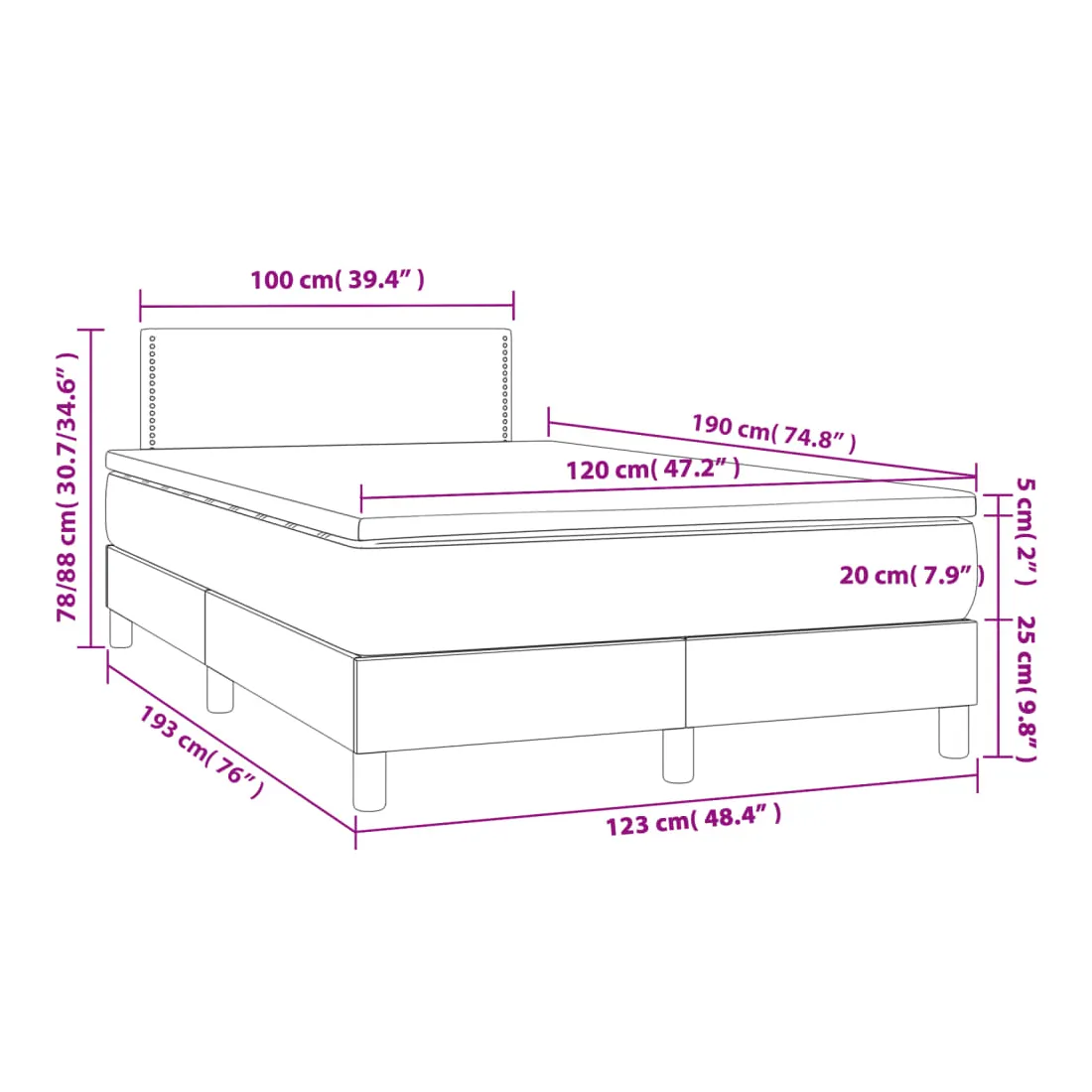 - Dimensions : 120 x 190 x 20 cm (l x L x H)