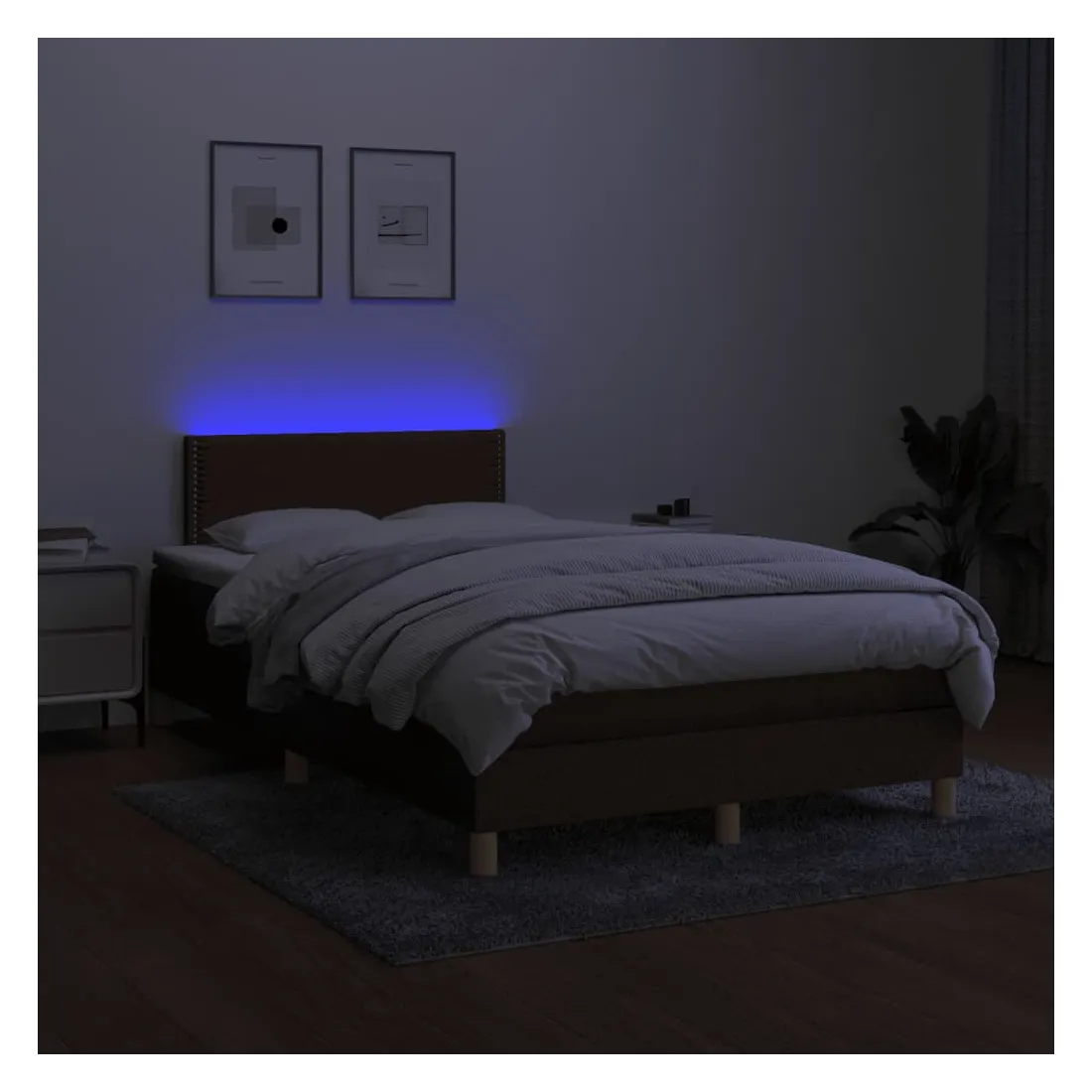 Sommier à lattes de lit matelas et LED marron foncé 120x190 cm