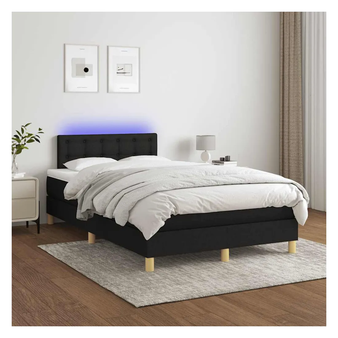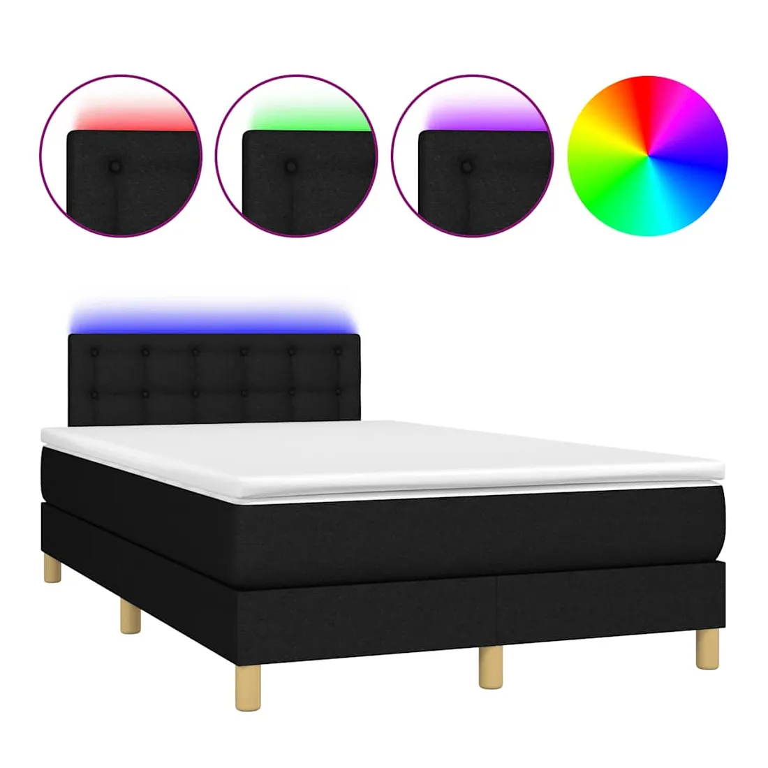 Utilisez ce sommier tapissier avec matelas et LED pour profiter d'un sommeil réparateur ! C'est le point central de votre chambre à coucher. Tissu durable : le tissu présente un aspect simple et épuré, et il est respirant et durable.Tête de lit pratique : la tête de lit est réglable en hauteur selon vos préférences. La tête de lit vous offre un excellent soutien du dos lorsque vous êtes assis dans votre lit pour lire ou regarder la télévision.Bande LED colorée : apportez de l'éclairage dans l'obscurité avec des lumières LED colorées !Matelas à ressorts ensachés : le ressort ensaché individuel intégré est connu pour sa très haute qualité tout en assurant un haut niveau de durabilité et d'adaptabilité. Il peut absorber efficacement le bruit et les chocs causés par les sauts et les rotations.Protège-matelas doux pour la peau : le protège-matelas est recouvert d'un tissu résistant et doux pour la peau, ce qui le rend souple et confortable. Bon à savoir :Pour des raisons d'hygiène, le matelas ne peut pas être retourné si l'emballage est retiré ou ouvert.Seule la partie avec un symbole de ciseaux peut être coupée et seule la partie avec l'USB continuera à fonctionner comme avant.Ce produit est doté d'un connecteur USB qui nécessite une source d'alimentation USB de 5V certifiée (non incluse).