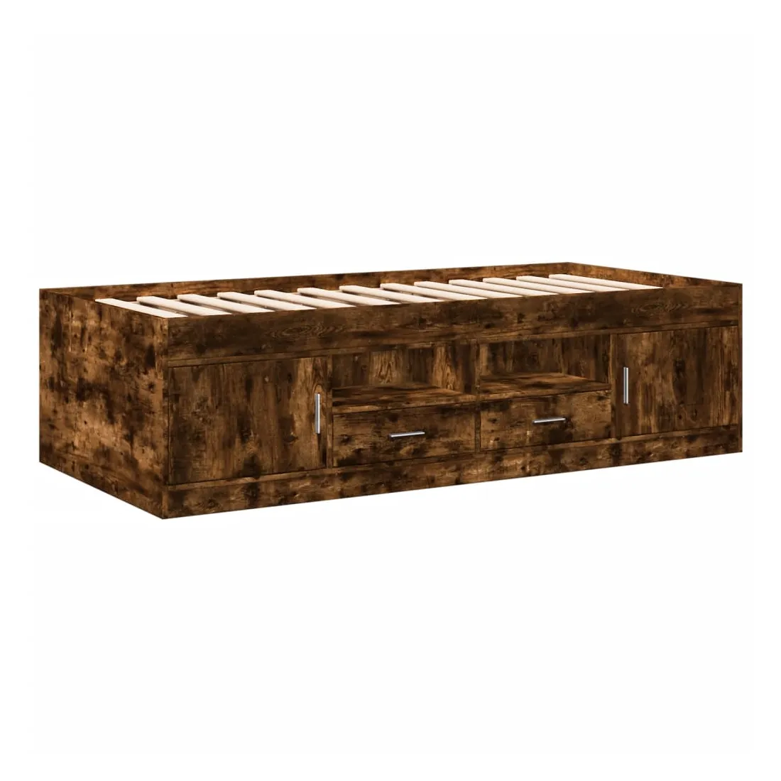 Ce lit de jour polyvalent peut être utilisé non seulement comme lit dans la chambre à coucher, mais aussi comme canapé dans le salon. Il conviendra parfaitement à vos différents besoins, vous offrant beaucoup d'espace pour dormir ou vous reposer. Construction solide : ce canapé-lit est doté d'un cadre robuste en bois d'ingénierie. Le bois d'ingénierie est d'une qualité exceptionnelle avec une surface lisse et se caractérise par sa solidité, sa stabilité et sa résistance à l'humidité.Fonction de rangement : les tiroirs de lit inclus offrent suffisamment d'espace de rangement pour ranger vos articles essentiels, gardant votre pièce propre et bien rangée.Lattes robustes : les lattes de contreplaqué assurent une bonne répartition du poids, garantissant que le matelas reste en place à chaque torsion de votre corps pendant le sommeil. Bon à savoir :Un matelas n'est pas inclus avec ce lit. Nous offrons une sélection variée de matelas. Vous pouvez consulter notre boutique pour trouver un matelas assorti.